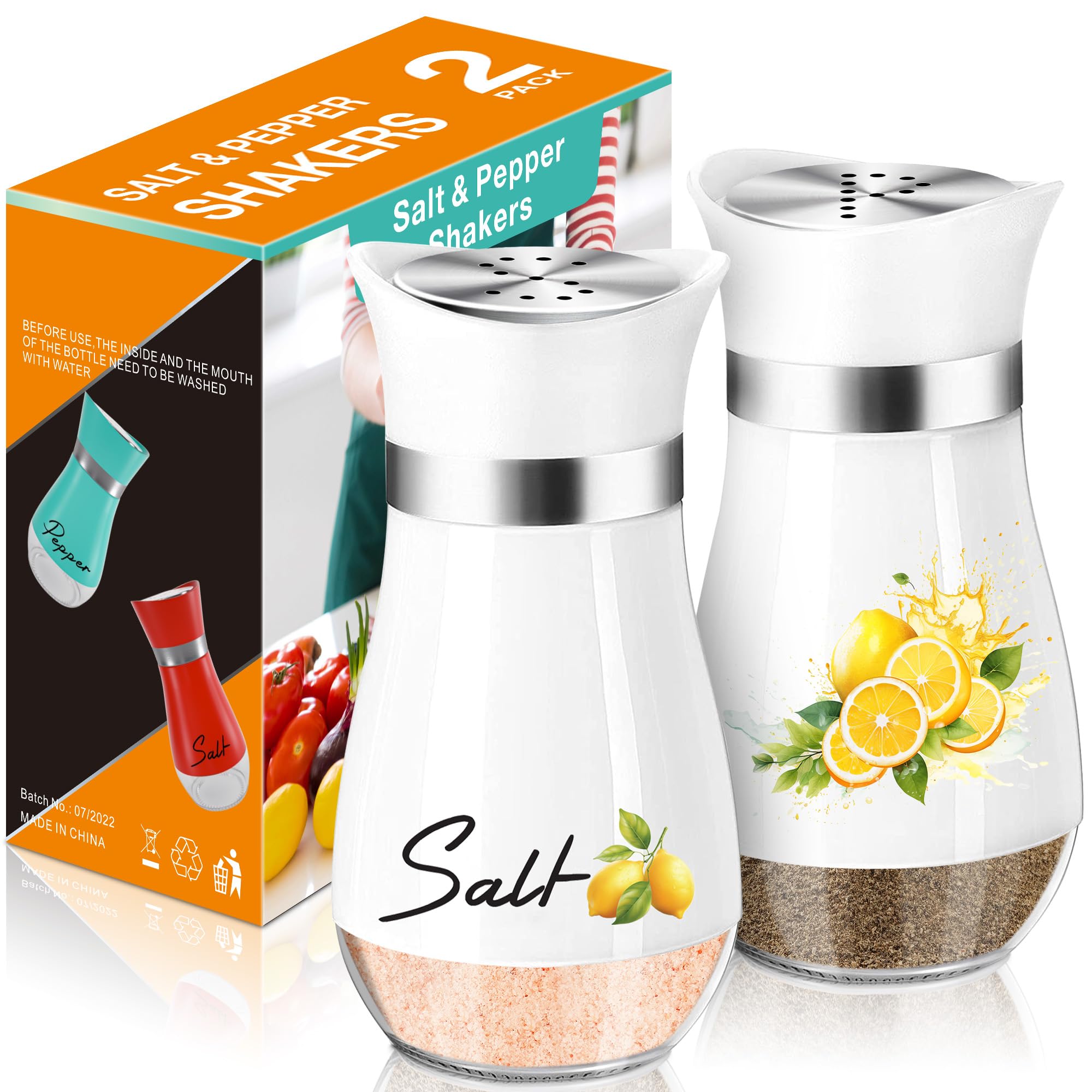 Super Cute Farmhouse Design:This salt and pepper shaker set comes in a Refillable Design for modern and farmhouse style kitchens, dining rooms and tables. They has the words "salt" and "pepper" printed on them, so you don't have to worry about holding the wrong shaker when using it. It is pleasing to the eye and practical at the same time