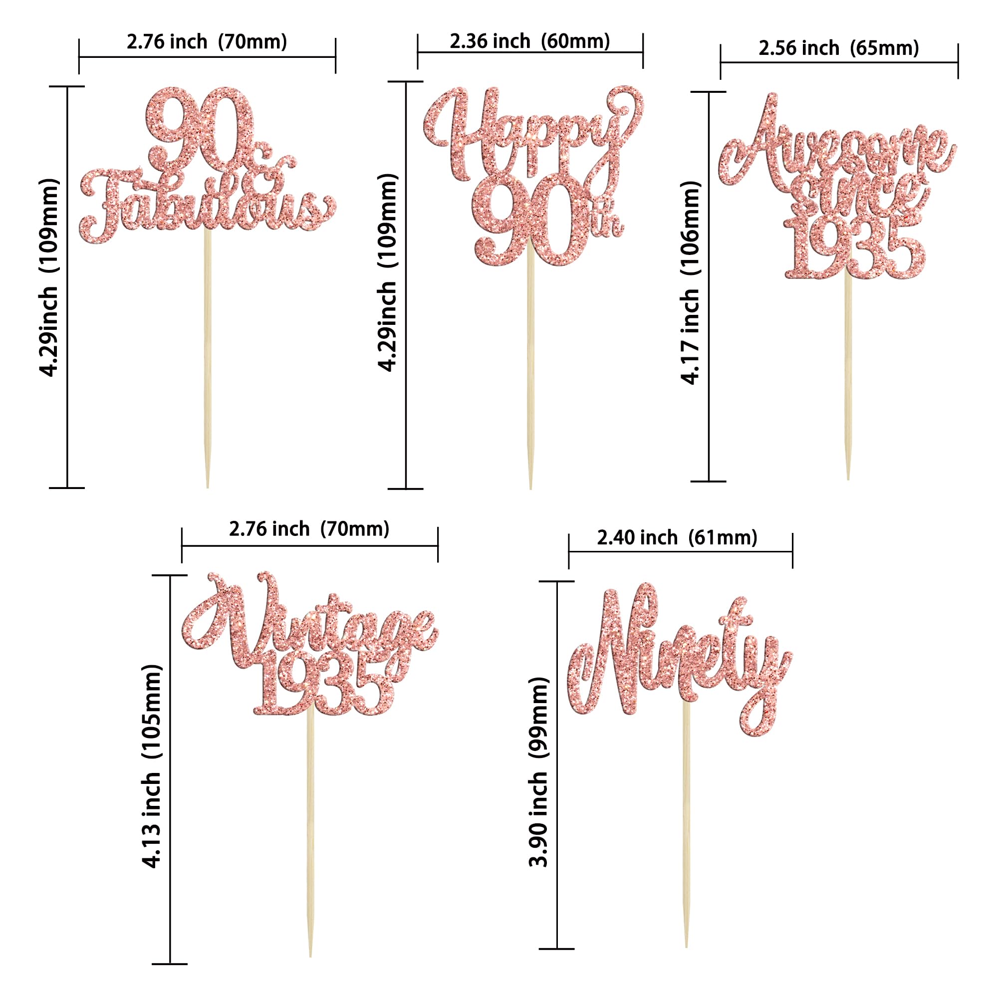Material and Usage - Usage: They are perfect for vintage 1935 theme party, 90th birthday theme party, 90th wedding anniversary theme party,cheers to 90 years theme party cupcake decorations, which make the cupcake look tastier and more attractive. - Material: Made of paper material, solid, not easy to deform and fade and can reuse for many times; Please don't put them into oven for they are only decorative and not edible. Package and Size - Package: Pack of 30Pcs. Size: W 2.4"*H 3.9"/W 6*H 10cm(Include Stick). Comes with assembled, so you can insert into your cake directly, which make your cake more interesting. - If you want to return the item, please kindly contact us first, then we will deal with it until you are satisfied. Note 1.The cupcake topper picks have pointed end, please keep away from children when using. 2. These cupcake toppers are for decoration purposes only, not edible and do not place in oven or use for baking. 3. Due to the light and screen difference, the item's color may be slightly different from the pictures.