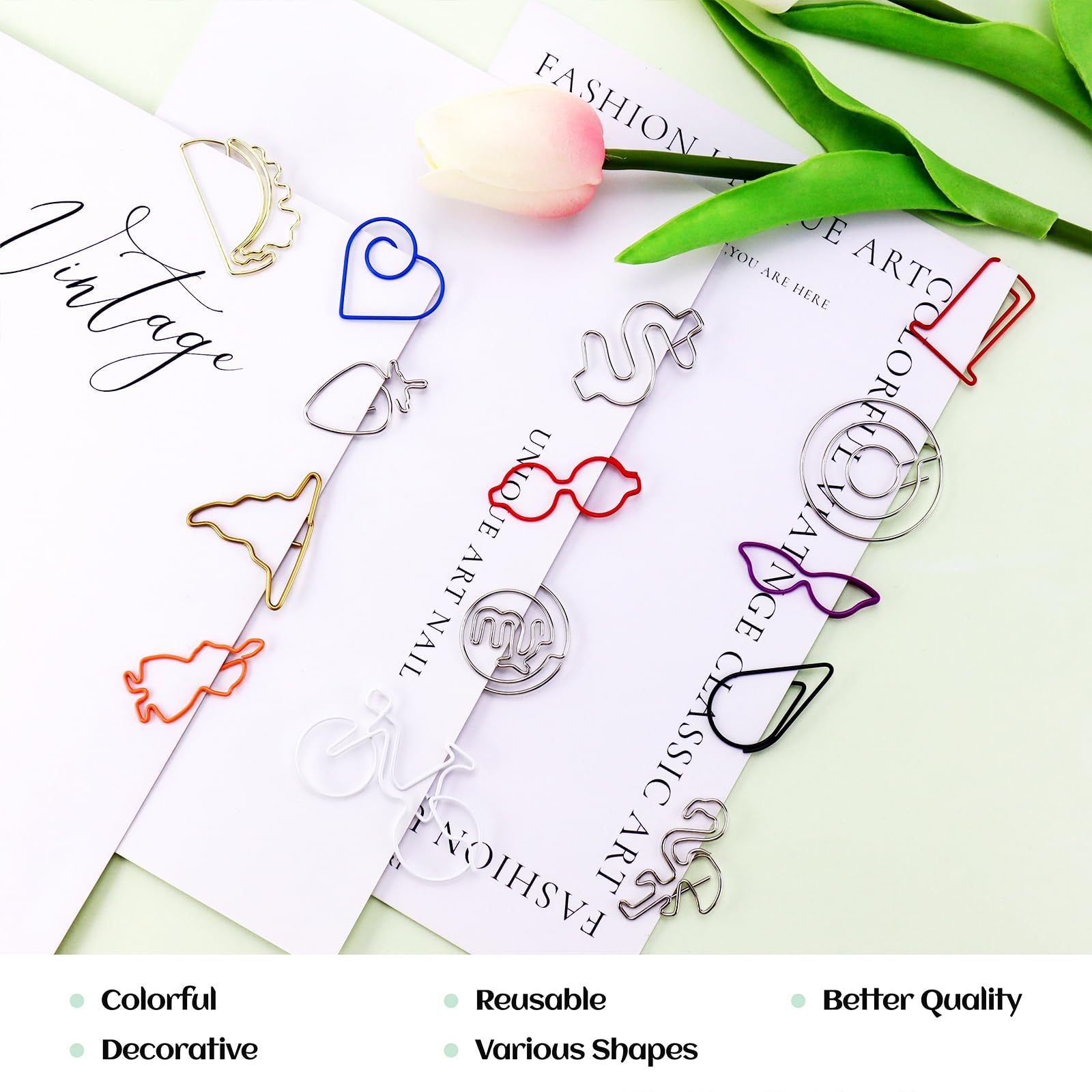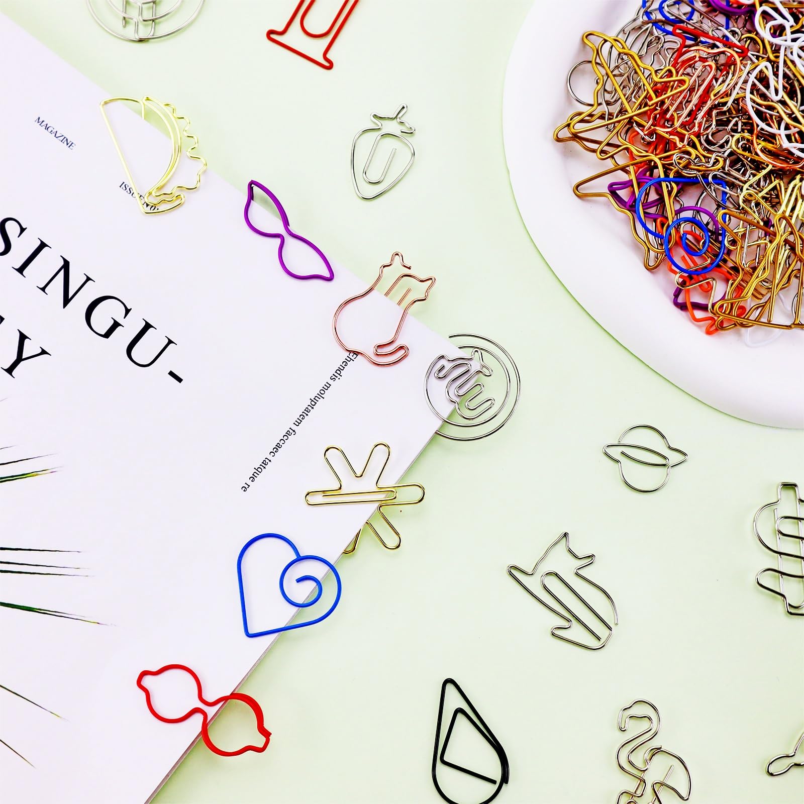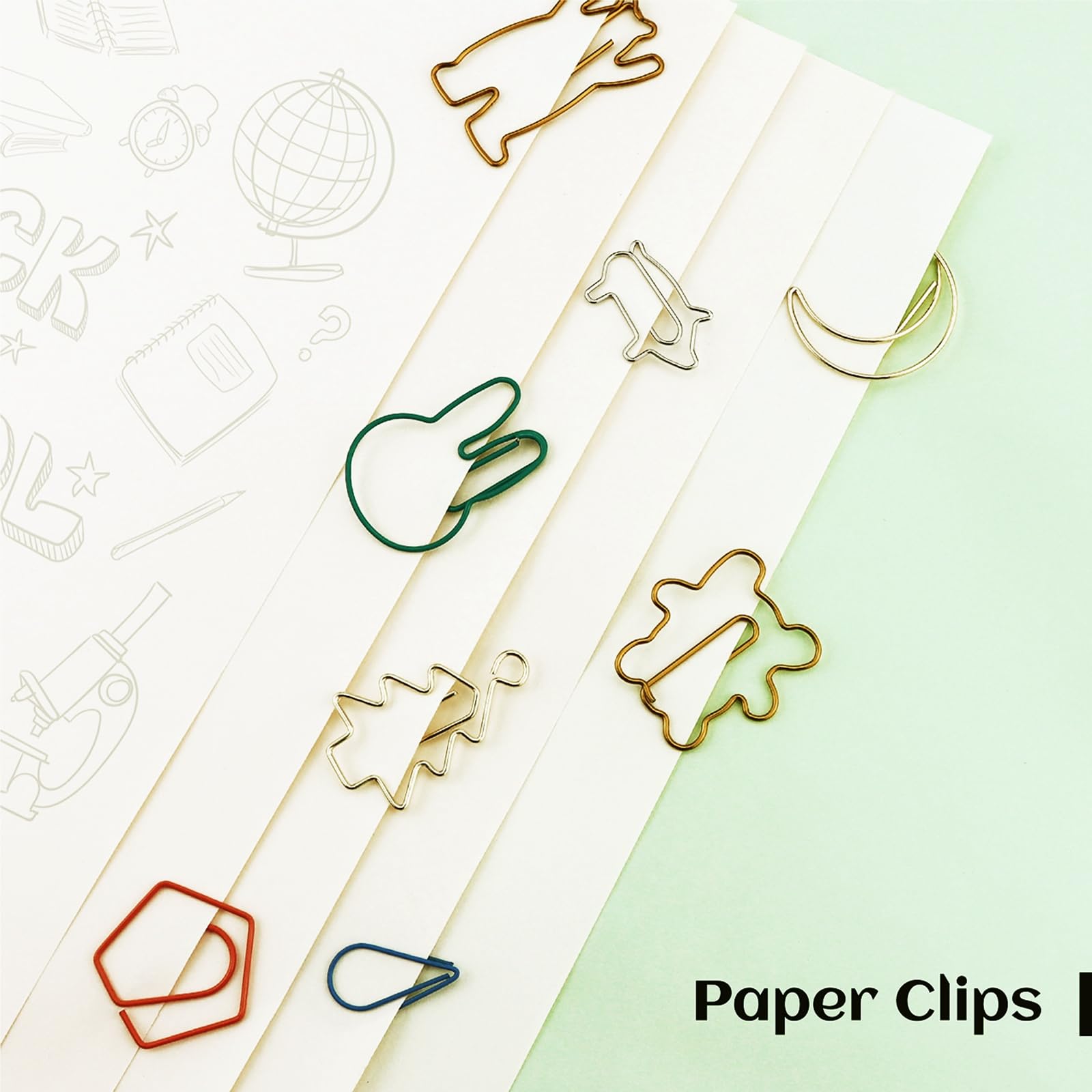 Unique Assorted: 150 pcs kinds of random shaped cute paper clips, including bear, moon, tree, rabbit, water drop, etc. It helps to keep things organized and decorate paper, calendar, notebook or scrapbook. Paper clip shapes are random and may not be available in all styles! Every product you bought is unique, we look forward to giving you a little surprise.