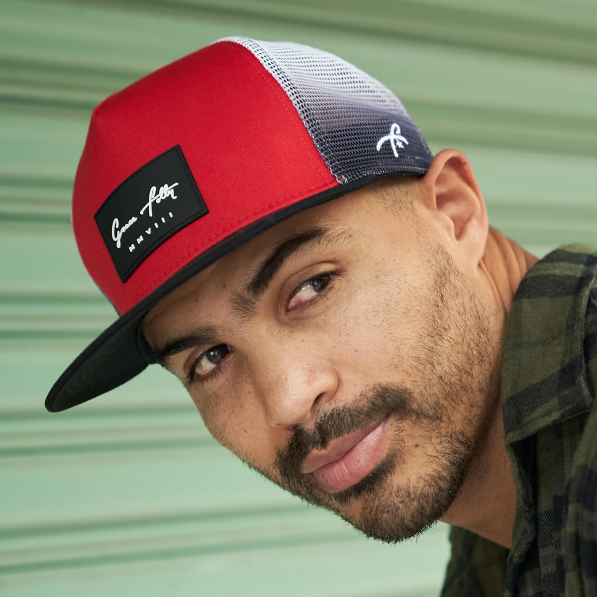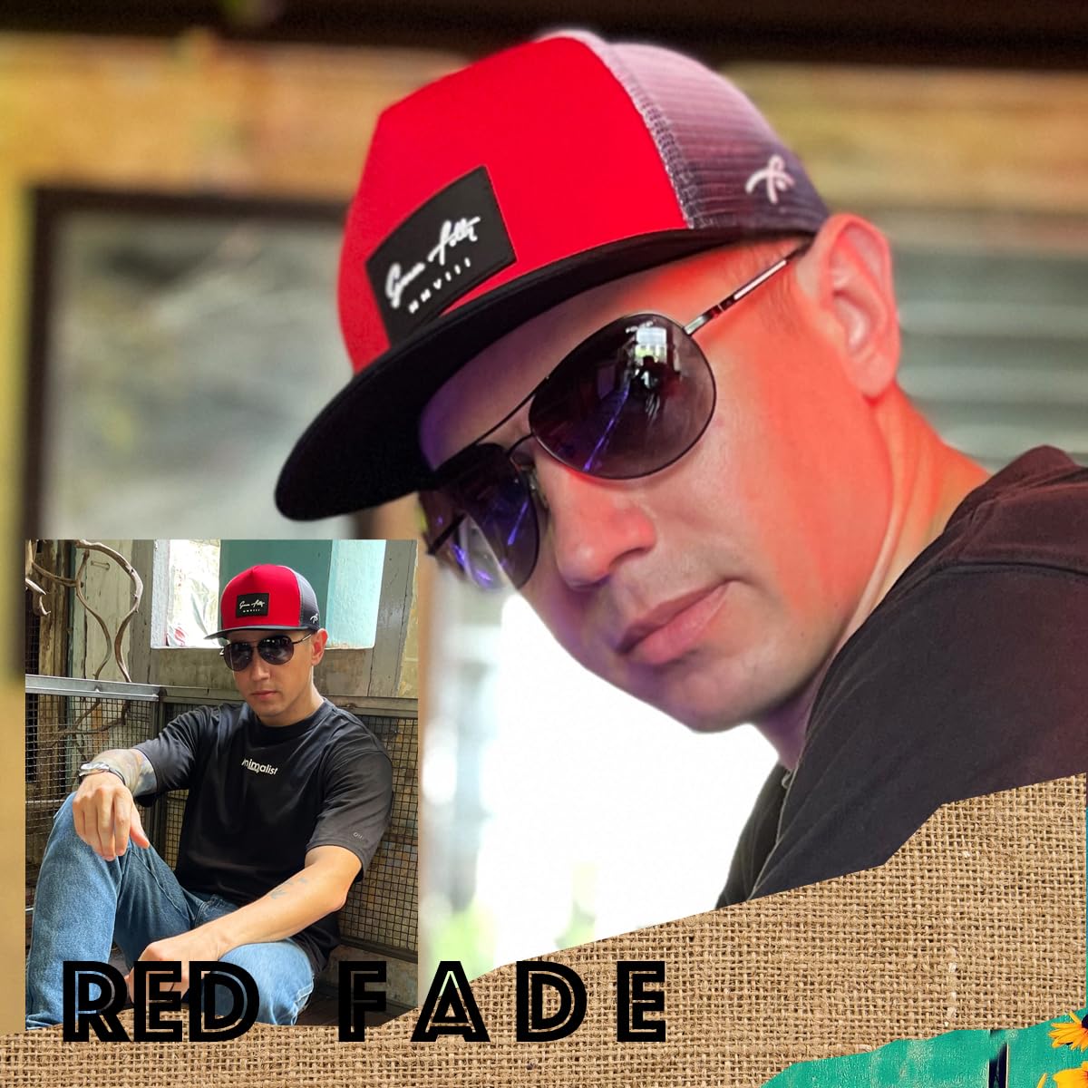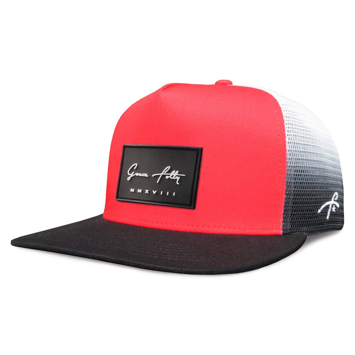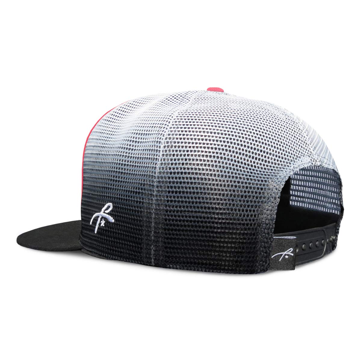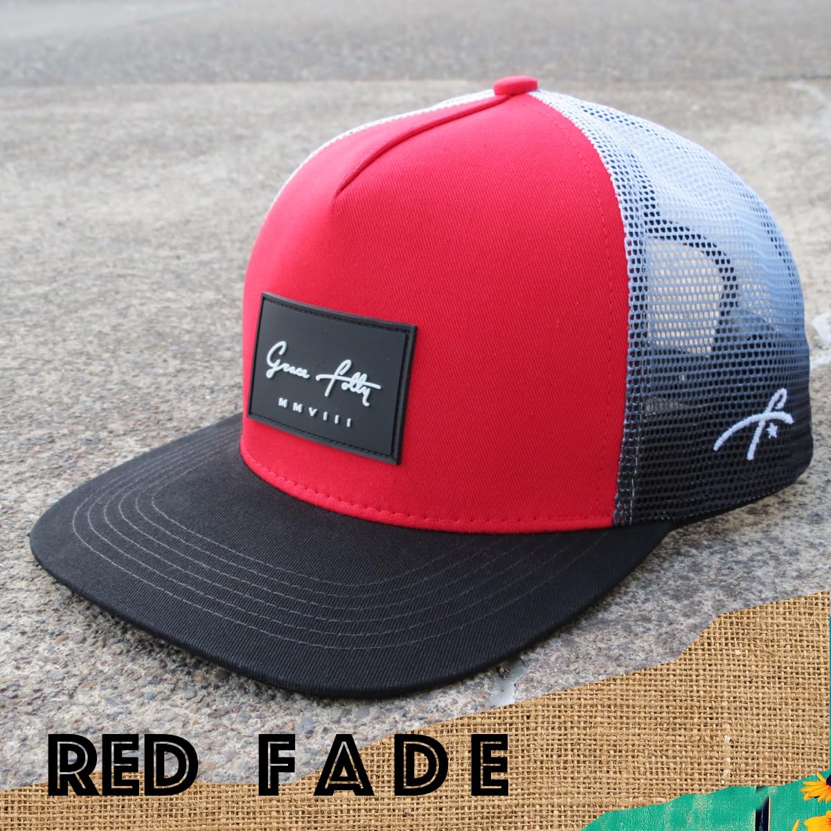 SMOOTH TRUCKER- This Red Fade Grace Folly flat bill trucker hat is sure to impress! Structured 5 panel trucker cap with mesh back and adjustable snapback. Be the envy of your friends in this old school trucker.