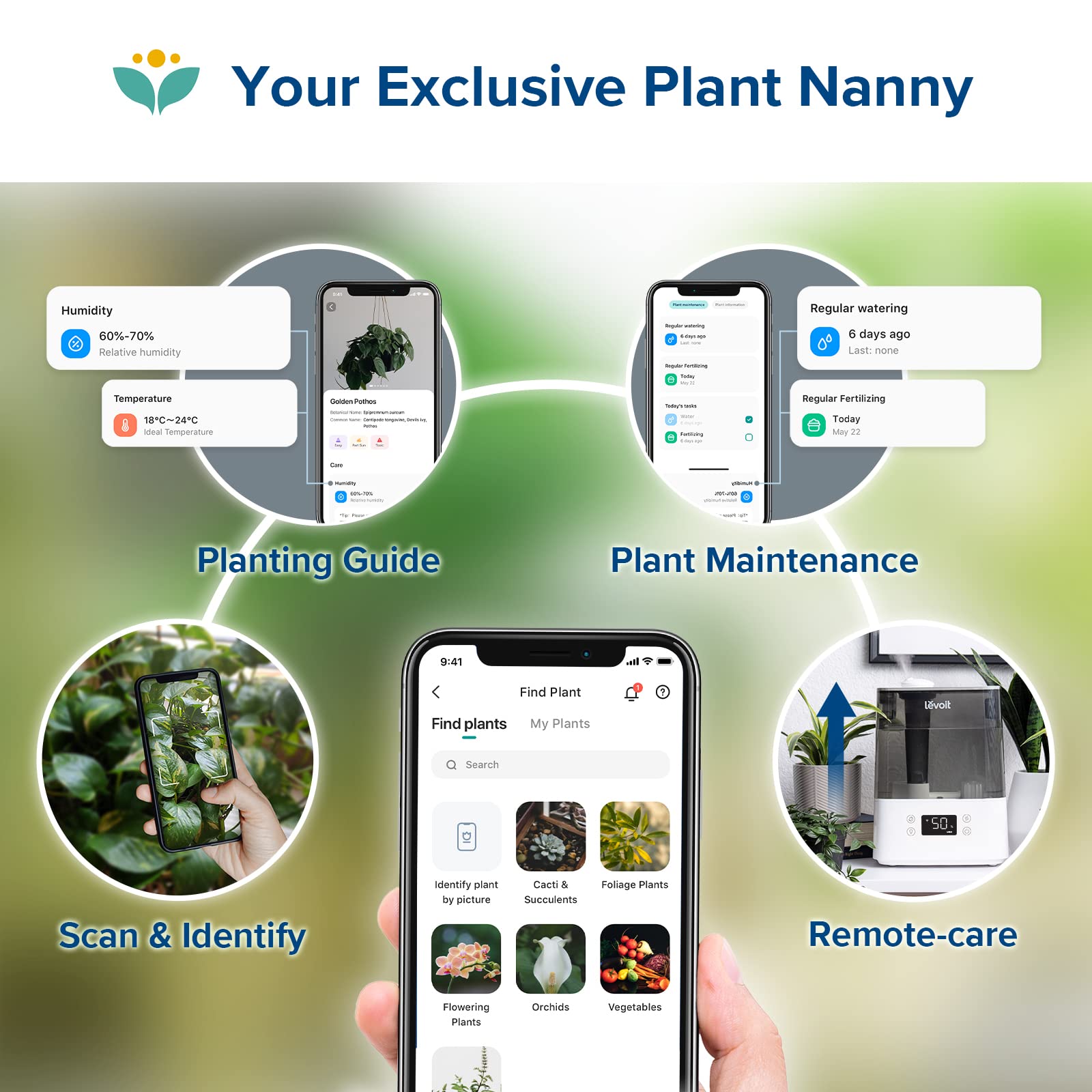 𝙈𝙪𝙡𝙩𝙞-𝙍𝙤𝙡𝙚 𝙎𝙪𝙞𝙩𝙖𝙗𝙡𝙚 𝙛𝙤𝙧 𝘼𝙡𝙡-𝙙𝙖𝙮 𝘾𝙖𝙧𝙚: Begin your day with morning aromatherapy. Thrive during family time with Auto Mode in the afternoon. Evening brings plant care with Plant Mode. Finally, enjoy sweet dreams with Sleep Mode