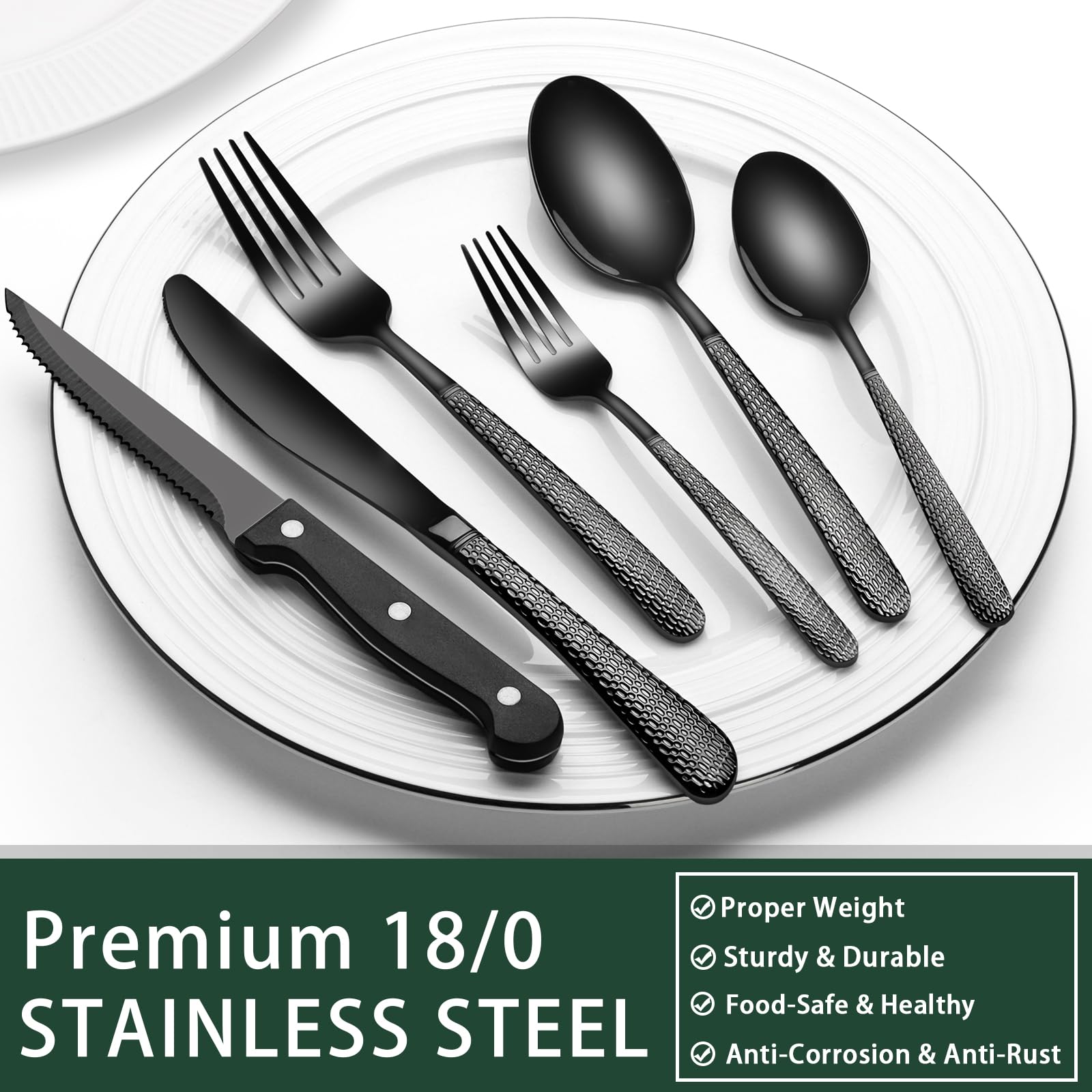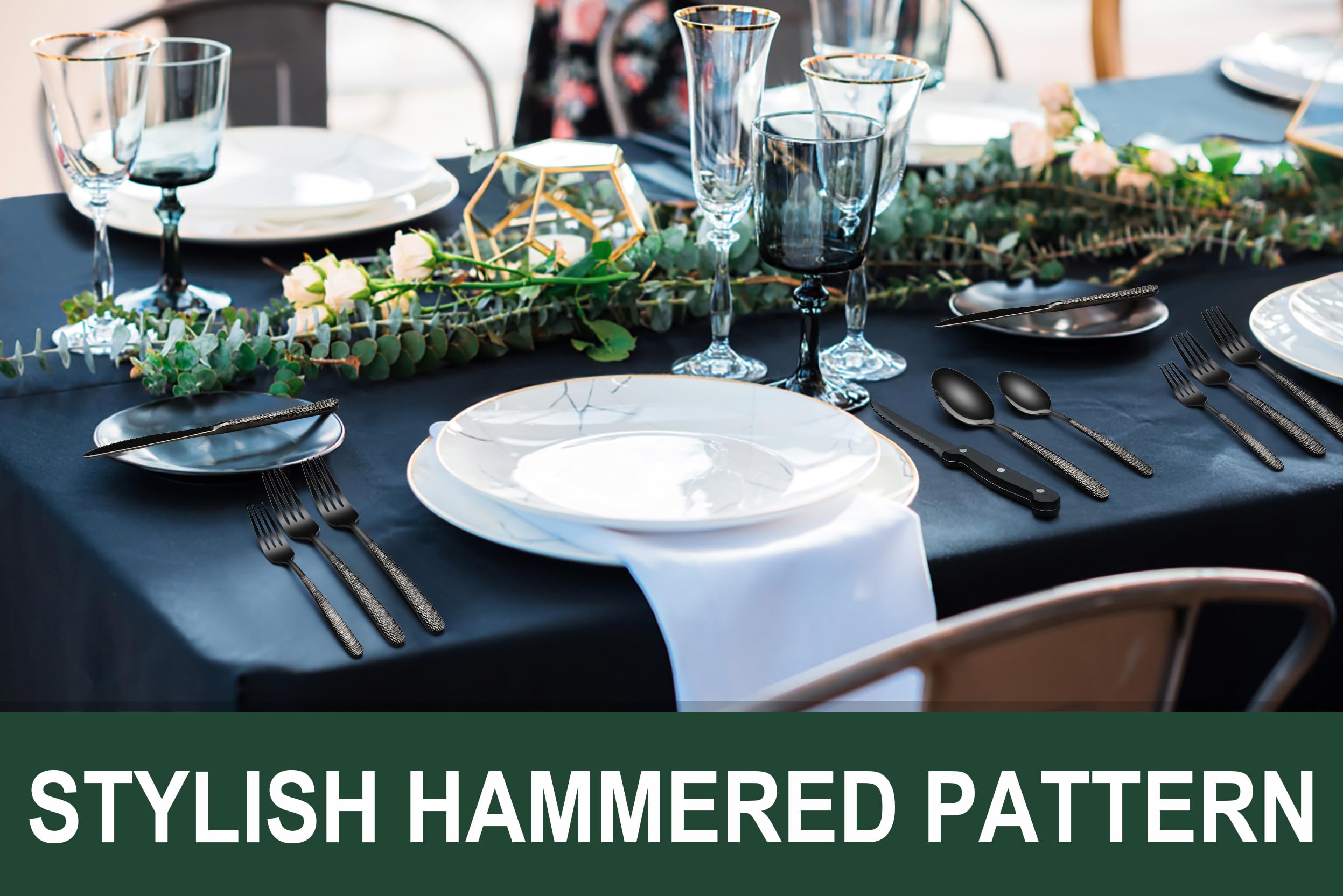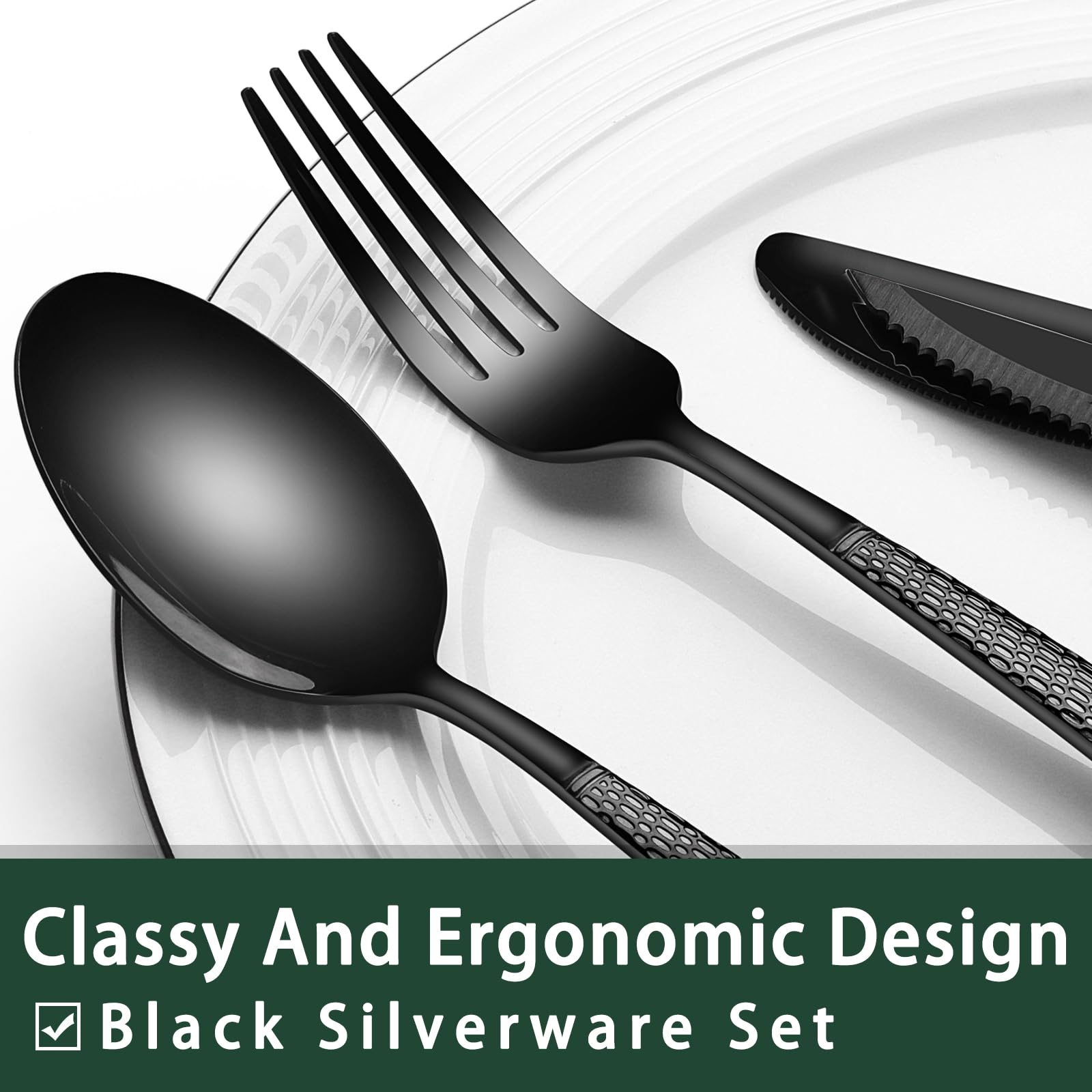 COMFORTABLE DESIGN: This flatware set has a classic silhouette with clean lines and polish-finish surface in all black, a good choice to go with your existing tableware. The smooth edge of the handle is pleasure to hold, appropriate weight and perfect balance are added to ensure maximum comfort during use.