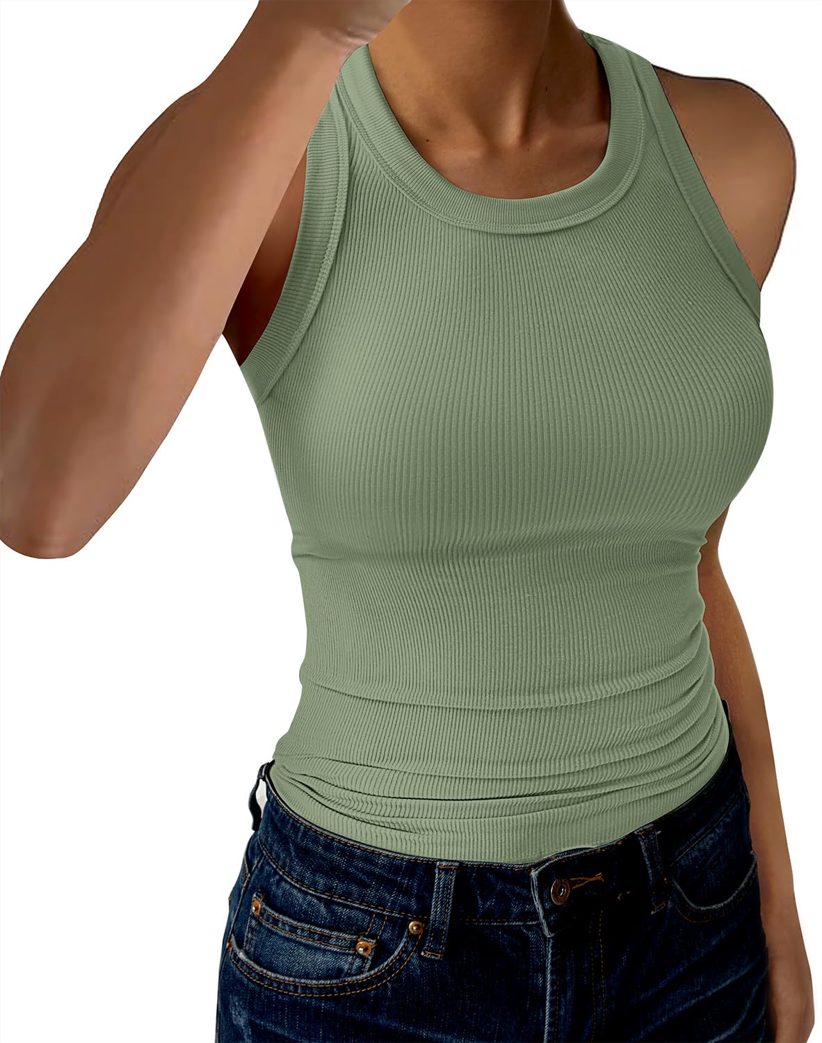 【Design】: Racerback Tank Tops cut for full range of movement. hip length, high crew neck for decent coverage. Sleeveless Tops and slim fit design can show your beautiful body curves.