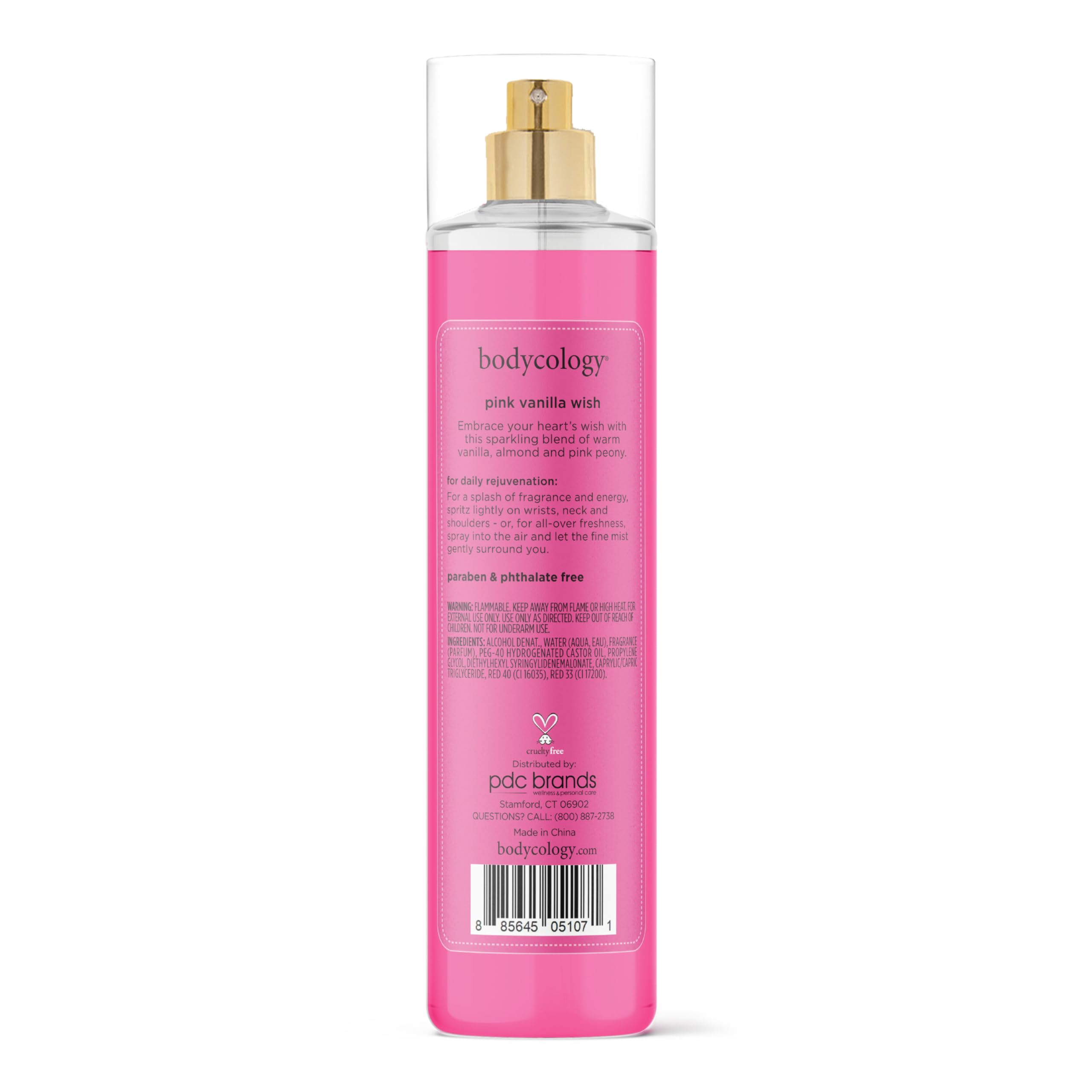 Embrace the magic every time you wear Bodycology Pink Vanilla Wish Fragrance Mist. With just a spritz or two before your day begins, you can carry the sparkling blend of warn vanilla, almond, and pink peony with you for hours. Fruity and delightful, this fragrance captures the essence of confidence. Spritz it on your wrists, neck, and shoulders or try spraying the mist into the air and allowing it to fall gently onto your skin. Bright and floral, this fragrance mist will quickly become a part of your beauty routine. This fragrance mist is the perfect follow-up after moisturizing with our Bodycology Pink Vanilla Wish Body Cream. Mix and match with our other fragrance mists to create a scent that is uniquely yours. All Bodycology products are paraben, phthalate, and cruelty-free.
