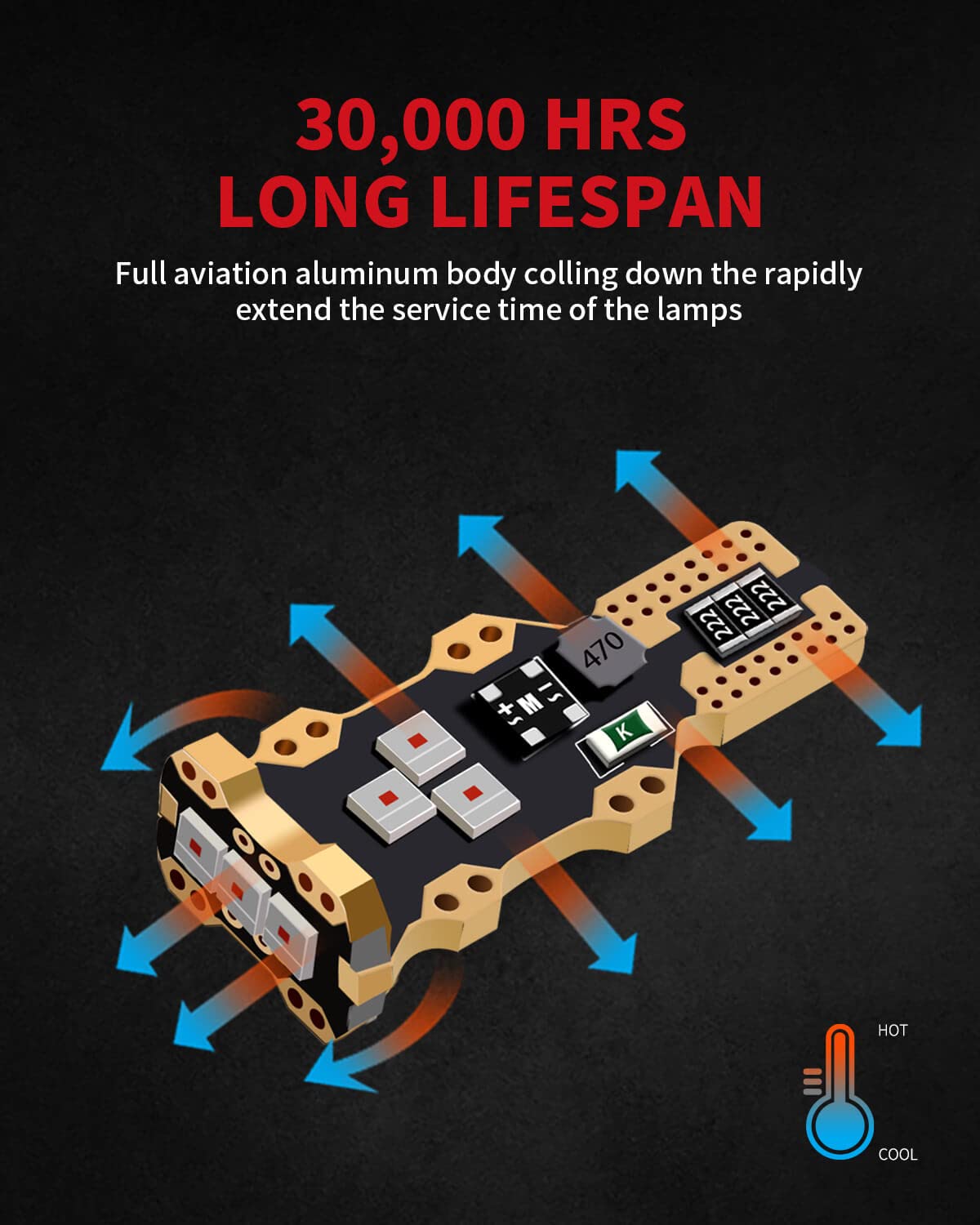 Long Lifepan: Efficient heat dissipation make sure the T15 led bulb red will work 30,000 hours. 3 Luminous Points Design, with similar beam pattern to halogen to provide safe driving.