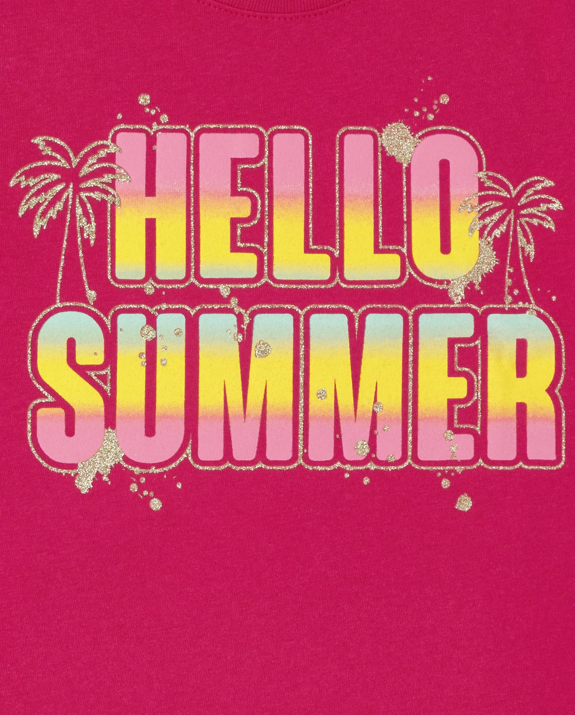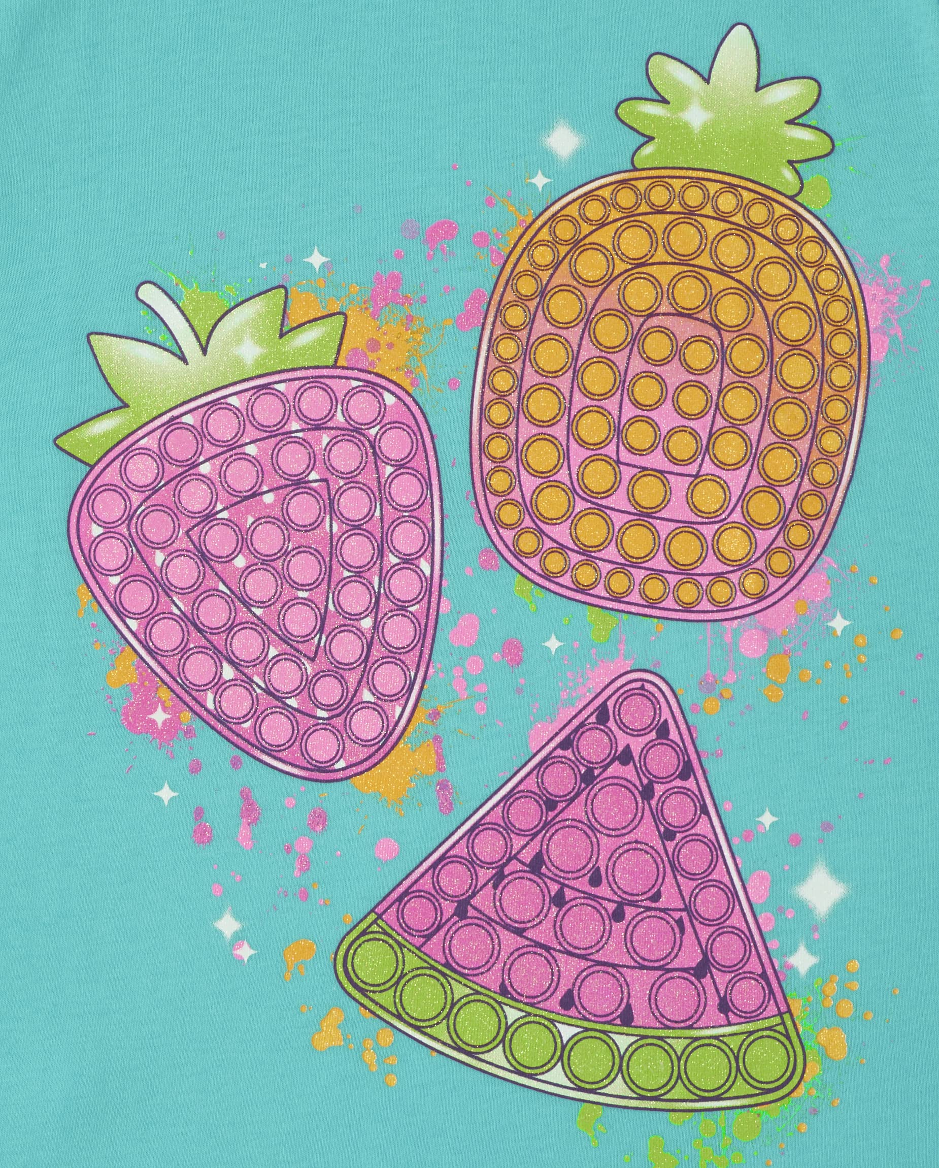 MULTIPACK — 5-pack of graphic t-shirts: 1 style with 'Hello Summer' graphic design at front; 1 style with smoothie graphic design at front; 1 style with rainbow popsicle graphic design at front; 1 style with fruit graphic design at front; 1 style with fruit pool floats graphic design at front