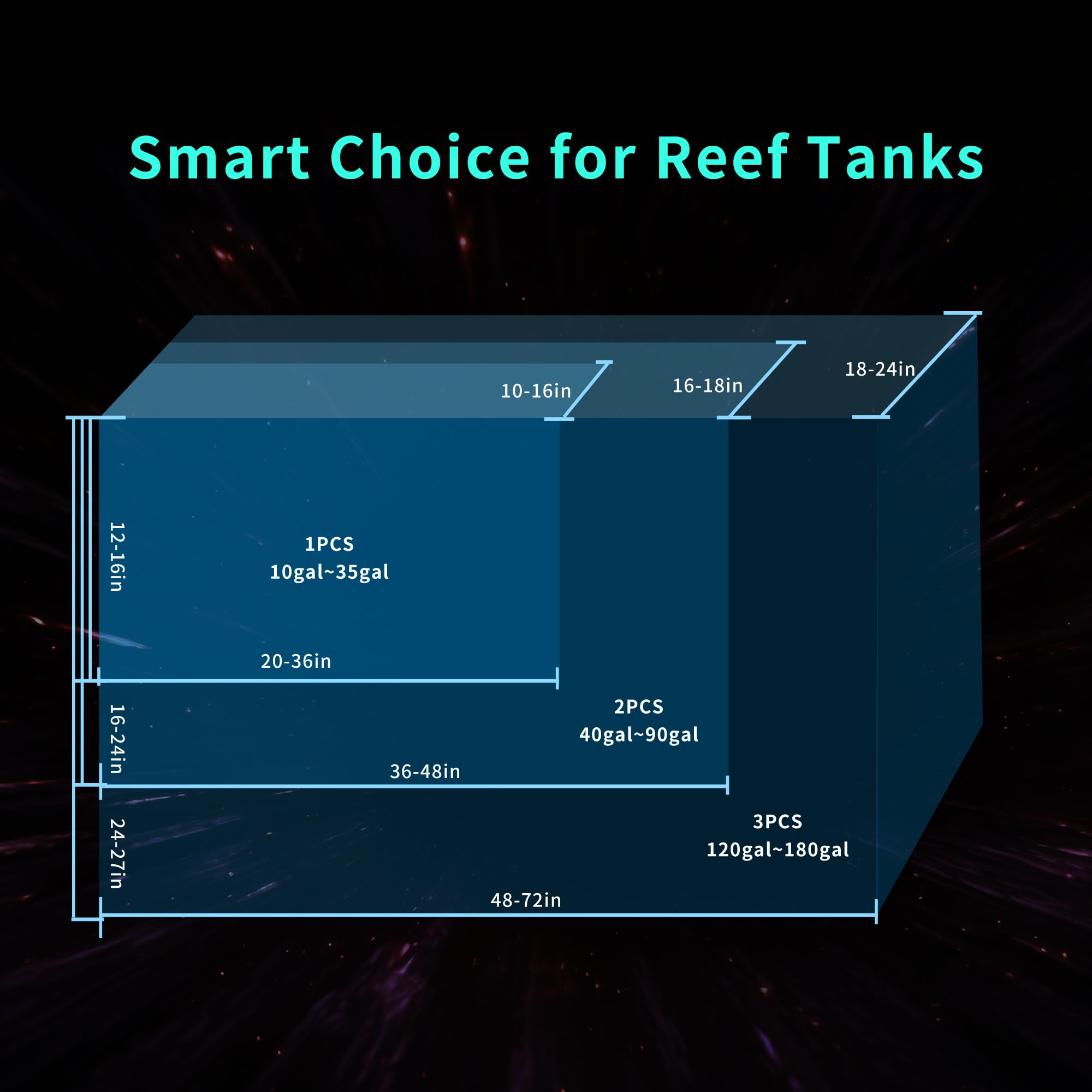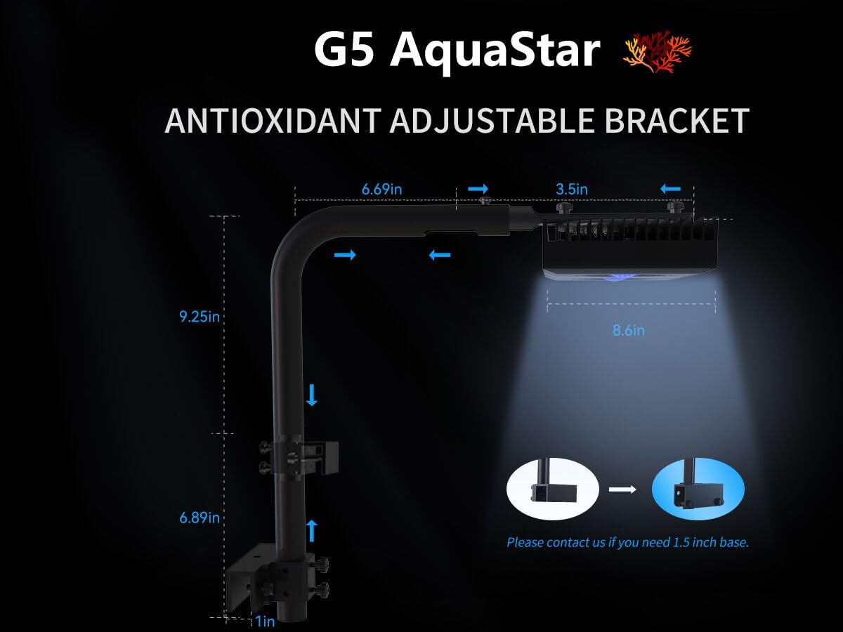 FLEXIBLE ALUMINUM AQUARIUM STAND - Special Anti-rust design flexible full aluminum with oxidation bracket suitable for different size of coral tanks. Oblate base efficiently increase stressed area and protect coral reef tank well. Ideal coverage of G5 coral light is 20-28 inch. Tank glass thickness: 0.2-1.5 inch