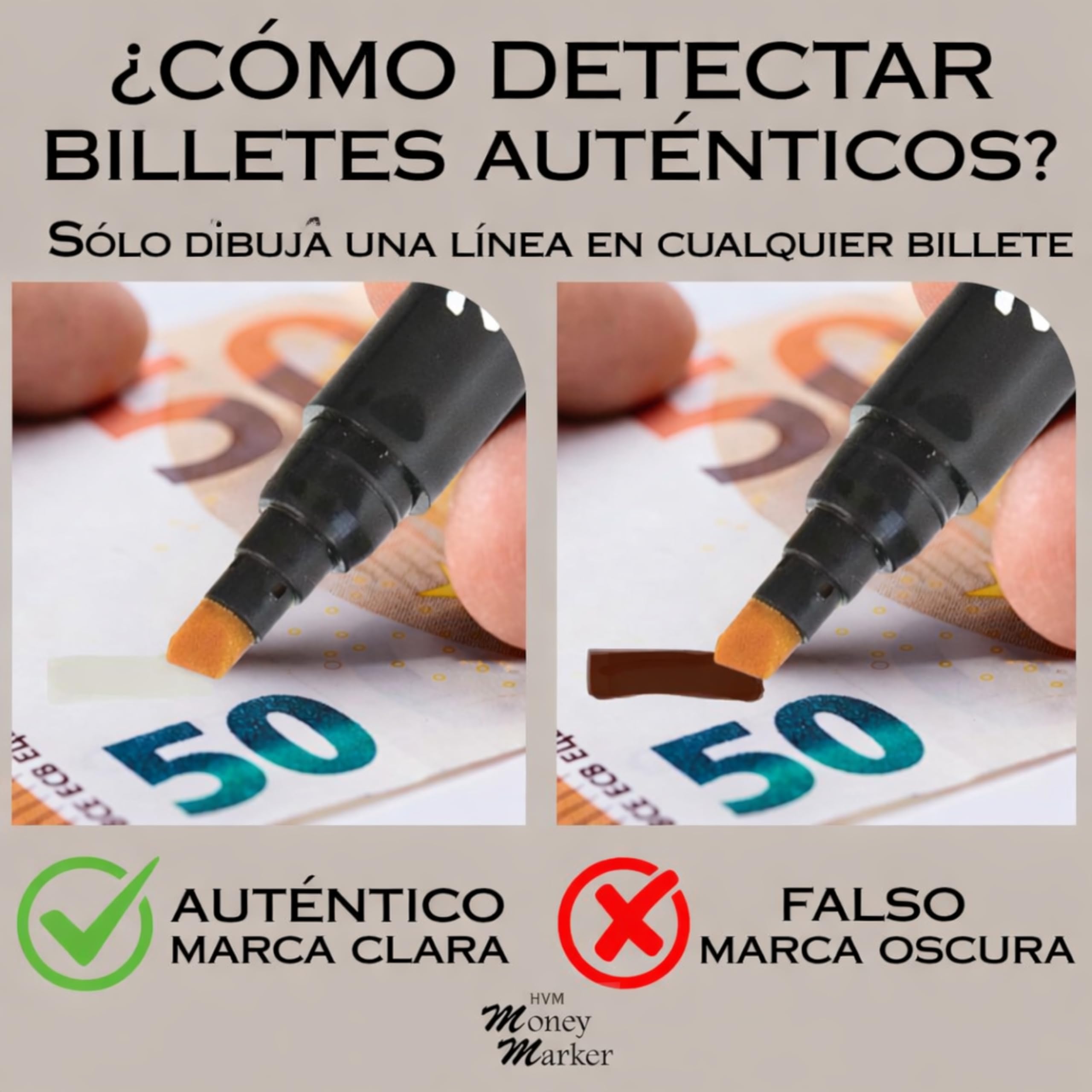 Easy-to-read mark — a dark mark may indicate a bill that requires further inspection, while a light amber mark typically appears on standard paper currency.