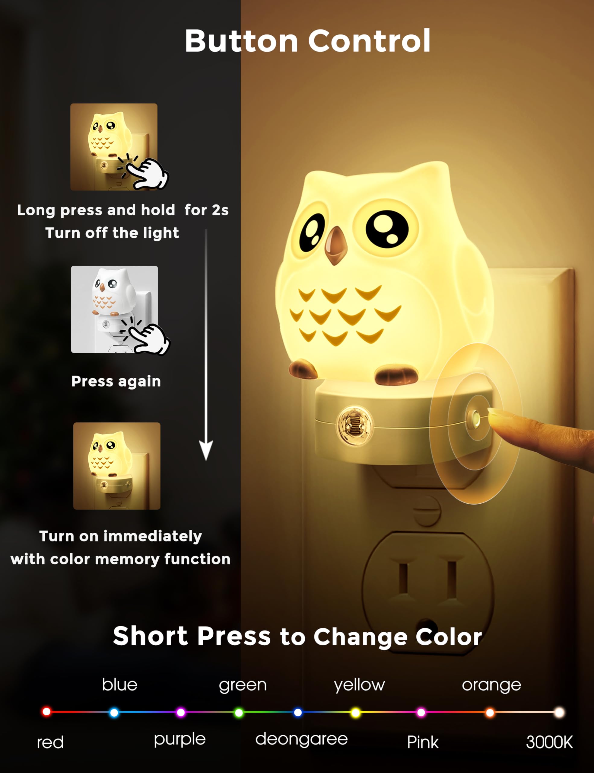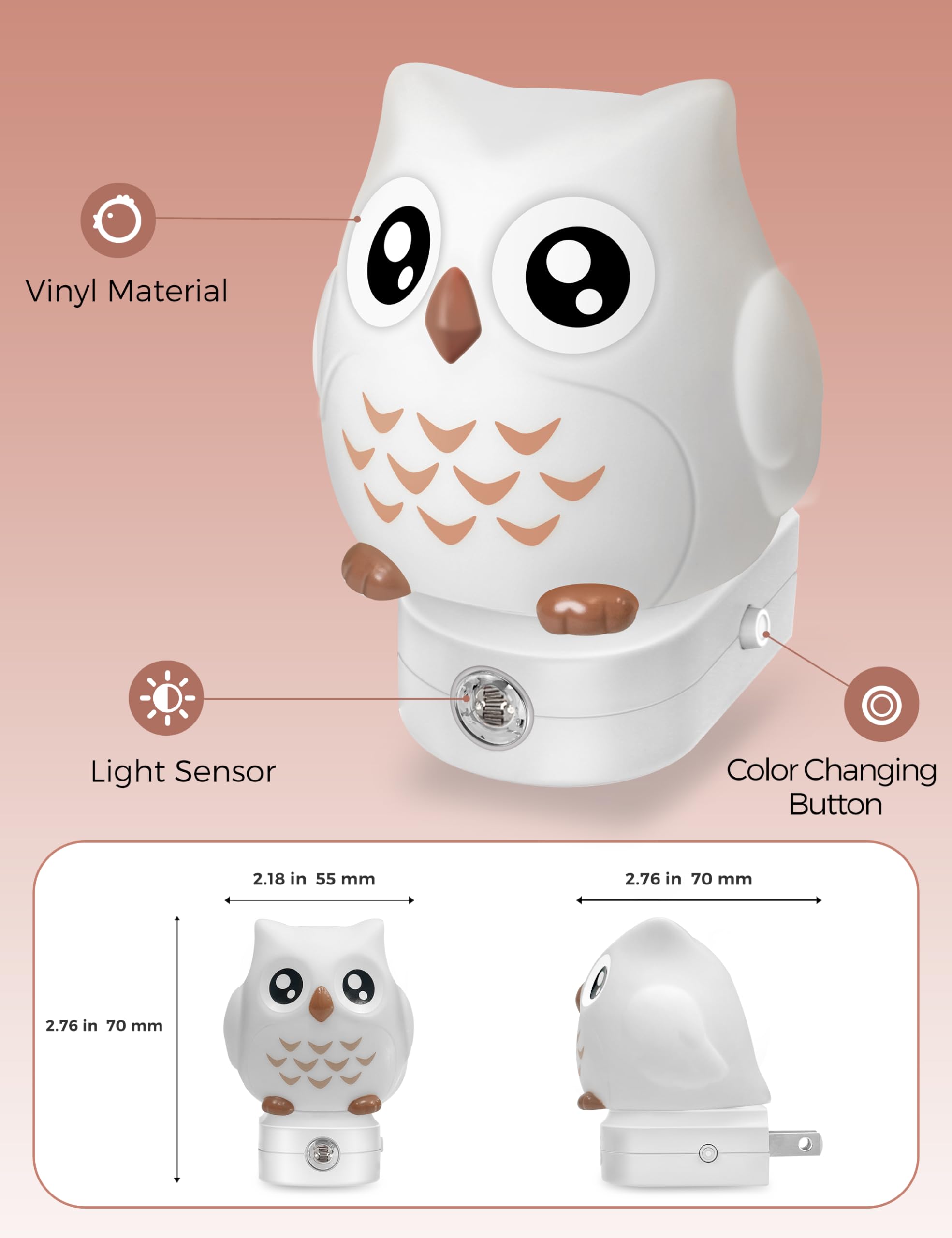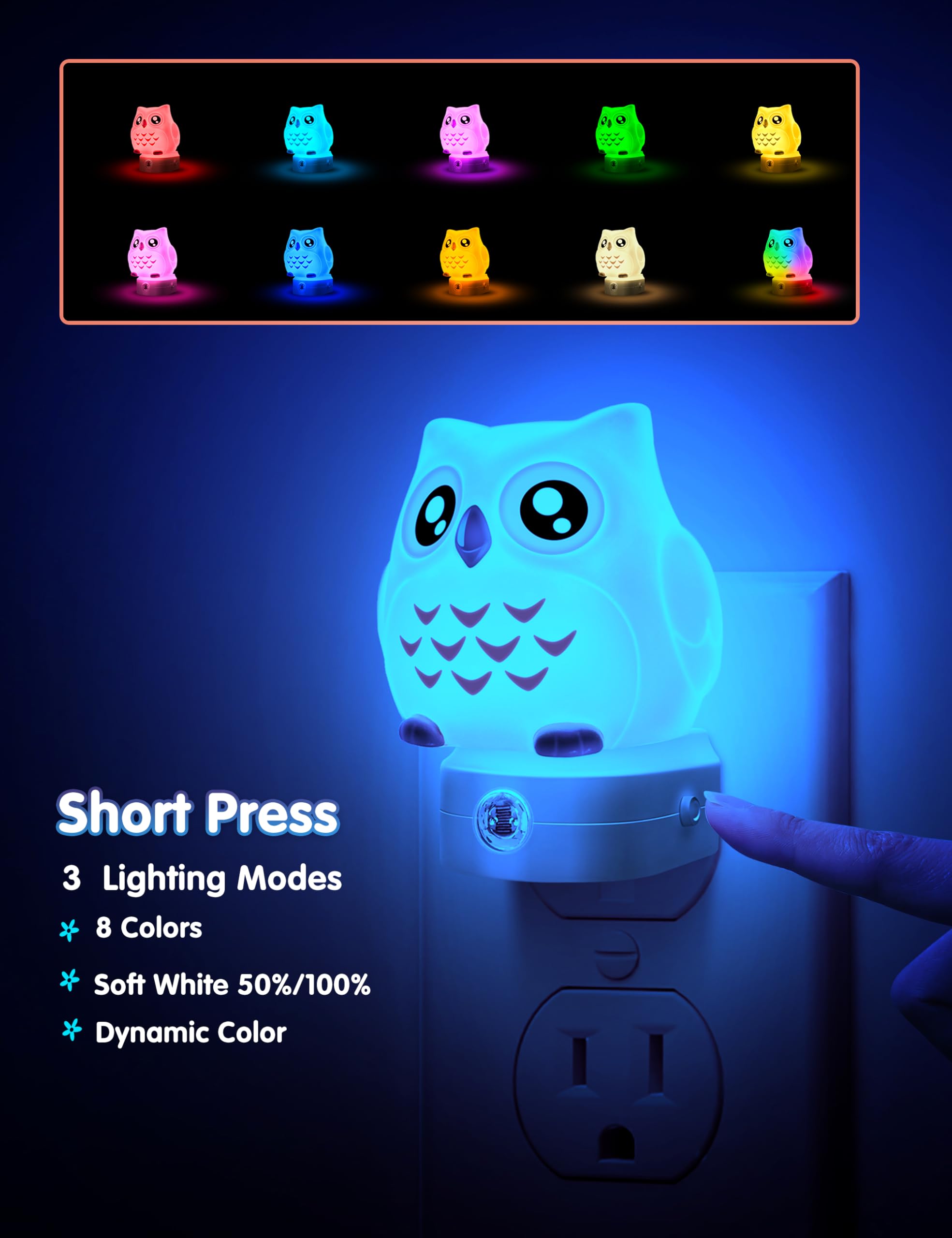 [Adorable 3D Owl Night Light]: We bring you a unique night light featuring an adorable 3D owl design that adds a touch of playfulness and magical ambiance to your home.