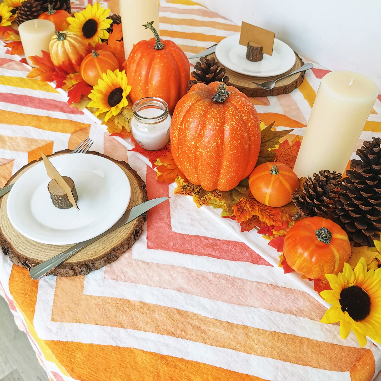 Assorted orange artificial pumpkins are perfect for Thanksgiving table centerpieces, fall place settings, Harvest table vignette, autumn tabletop displays, seasonal bowl displays, place card settings, fall wreaths, floral arrangements, autumn wedding decor, fall front porch displays, photo props, DIY projects and so on. They are also great gifts for a housewarming, wedding, birthday, holidays and special events.