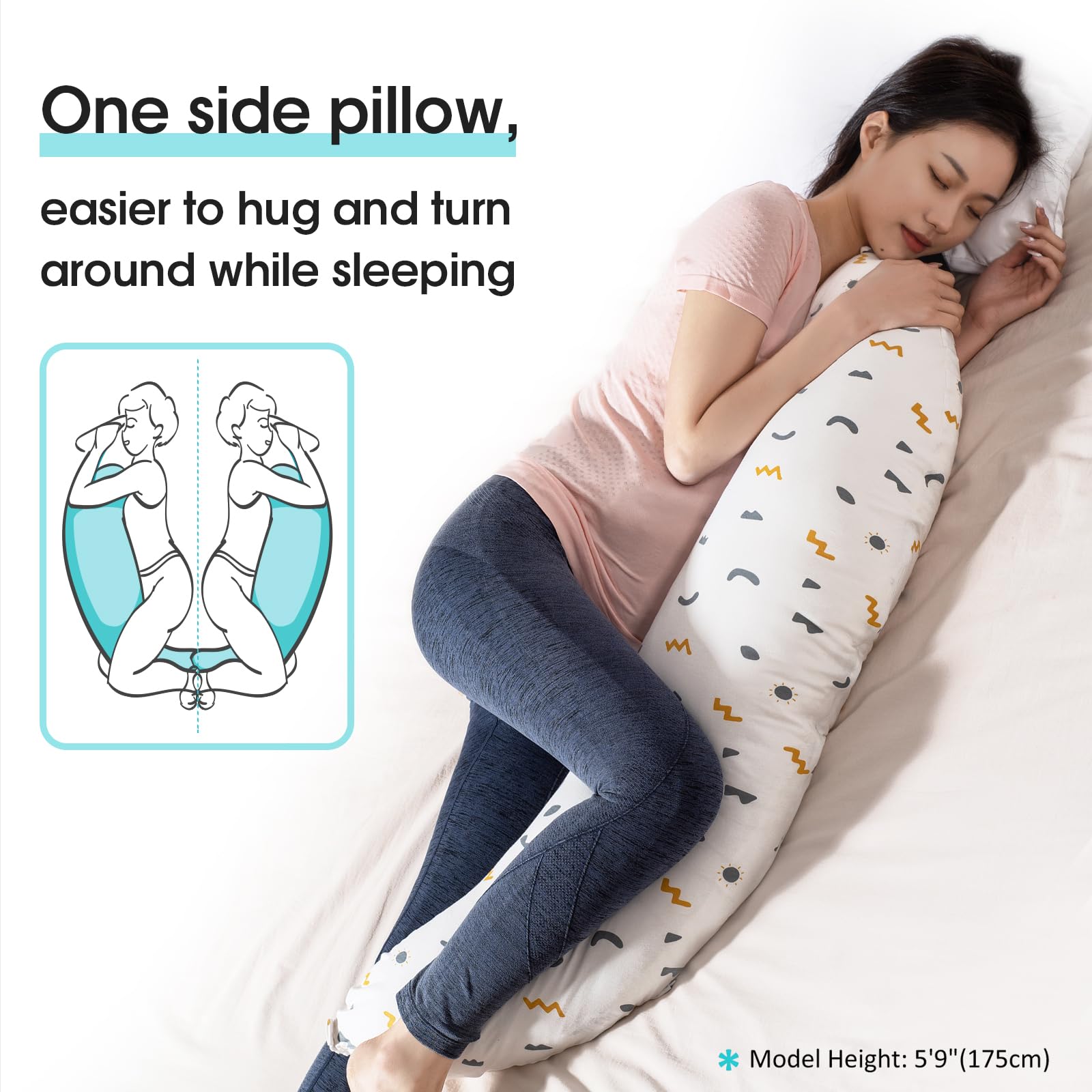 TRAVEL PREGNANCY PILLOW: this body pillow does not huge like other pregnancy pillows, and occupies too many bed places. It is super convenient to hug and turn around at night, a great helper for side, and active sleepers.
