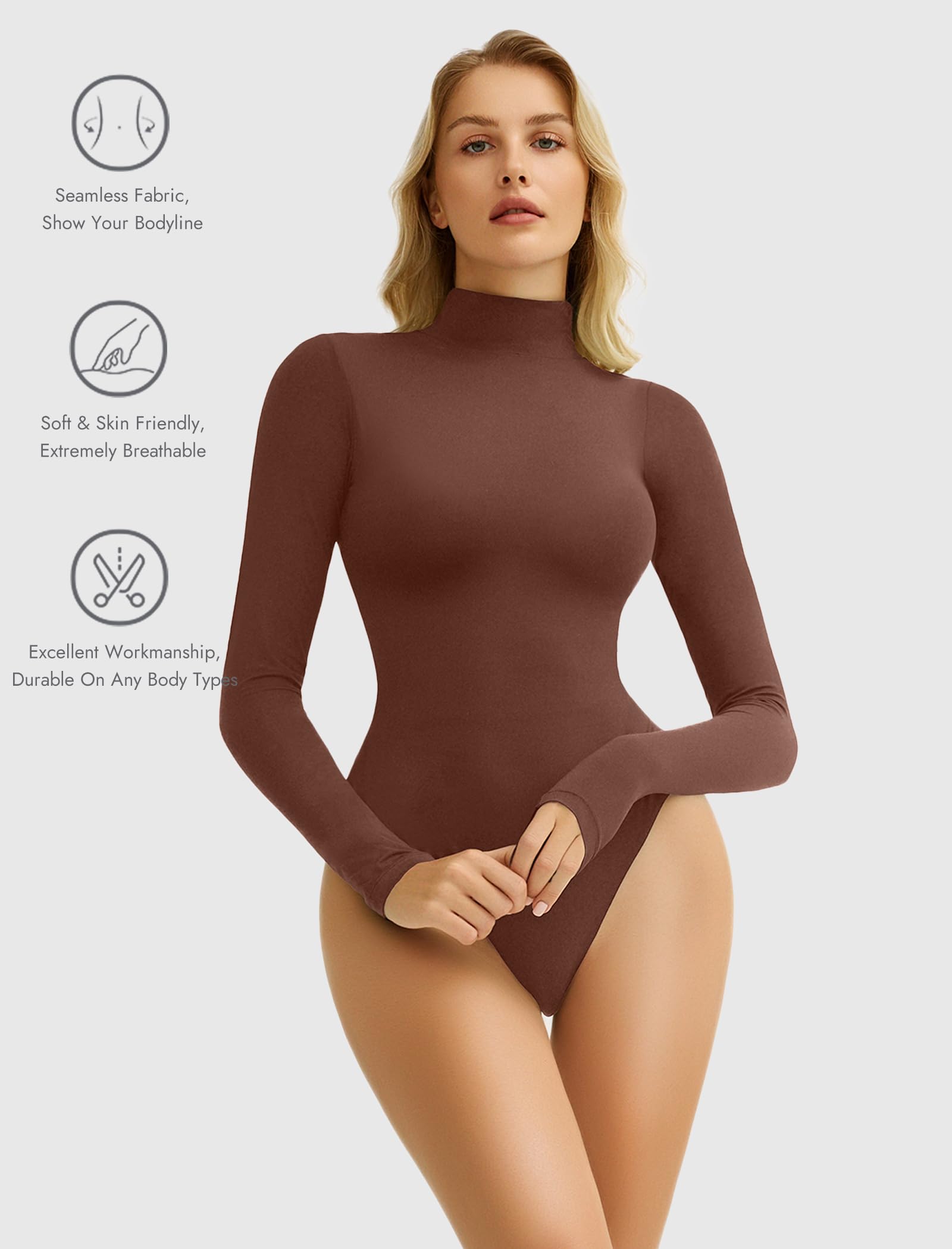 【Design】Long sleeve bodysuit with high neck, make the neck look slender. Soft and stretchy womens bodysuit fits most body shapes. The Snap closure design convenient for your dress.