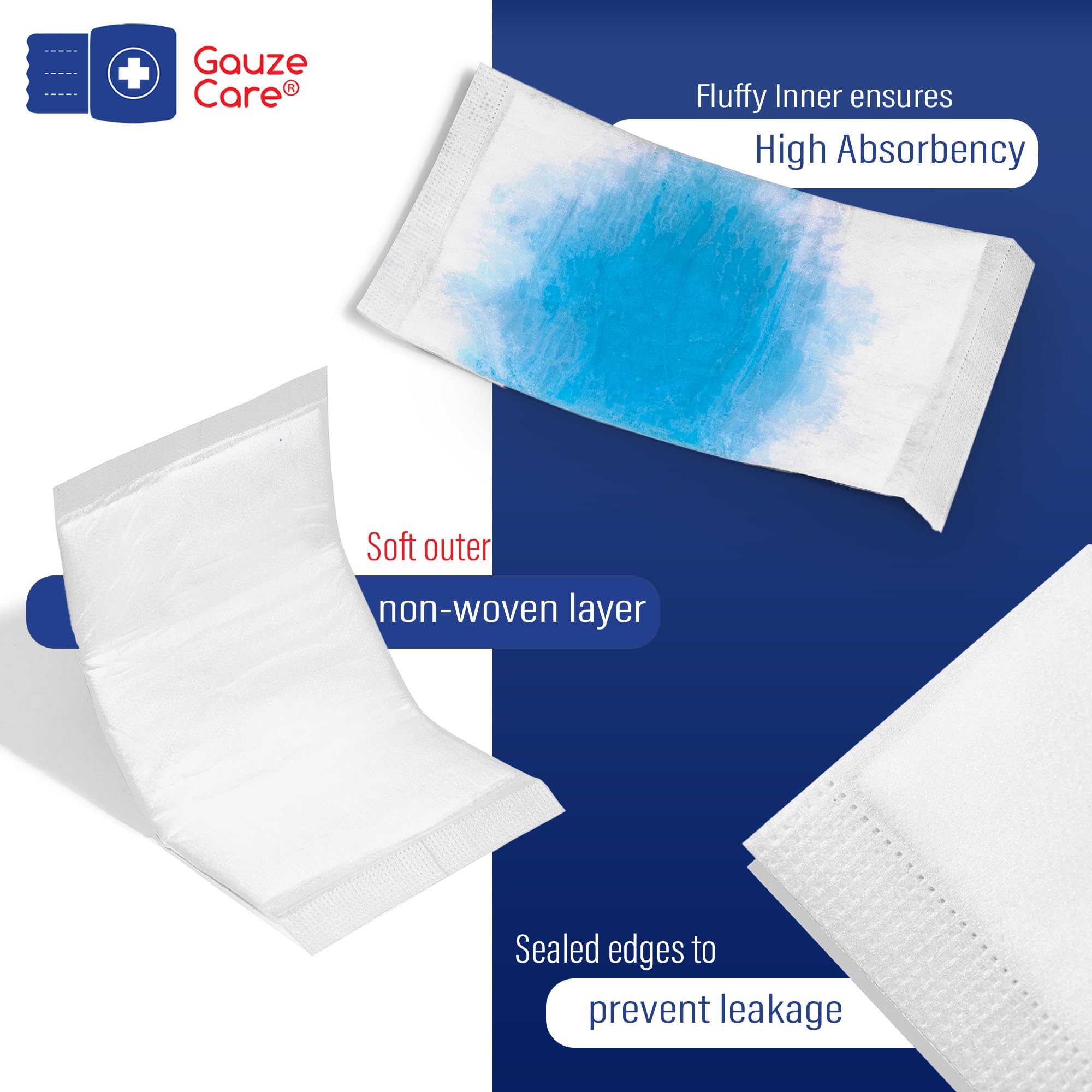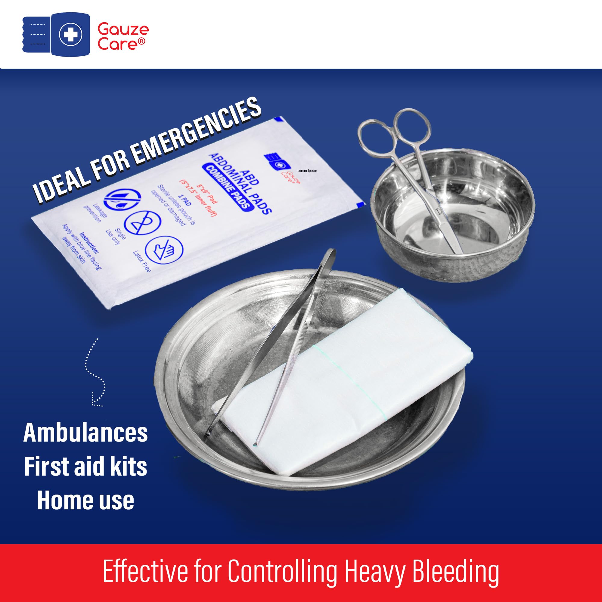 Directions for Use: While applying our ABD Pad, please ensure the blue line is facing away from the wound. Afterward, secure the ABD Pad with medical tape and then hold it with our GauzeCare Gauze Rolls or any other bandage