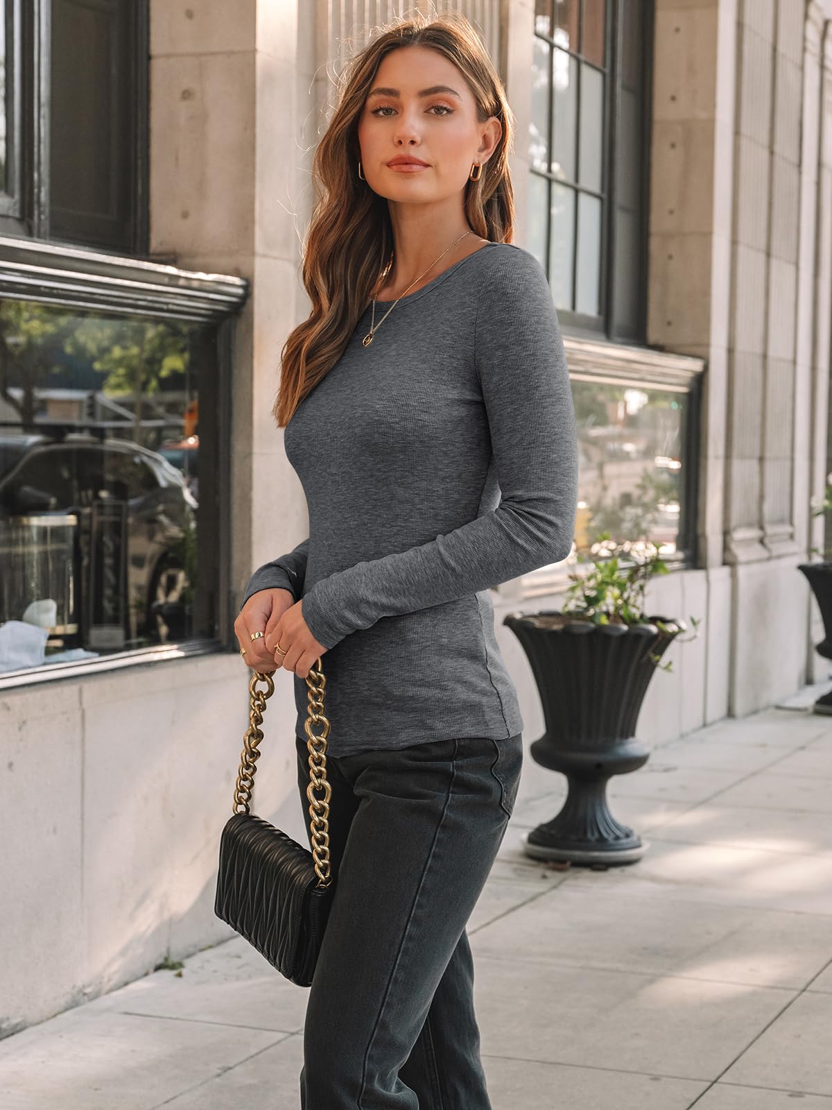CHIC DESIGN: Basic tops for woman designed with long sleeves, fleece lined, solid color, crewneck, ribbed knit, cozy, stretch fitted, our casual tees will be your faves season after season