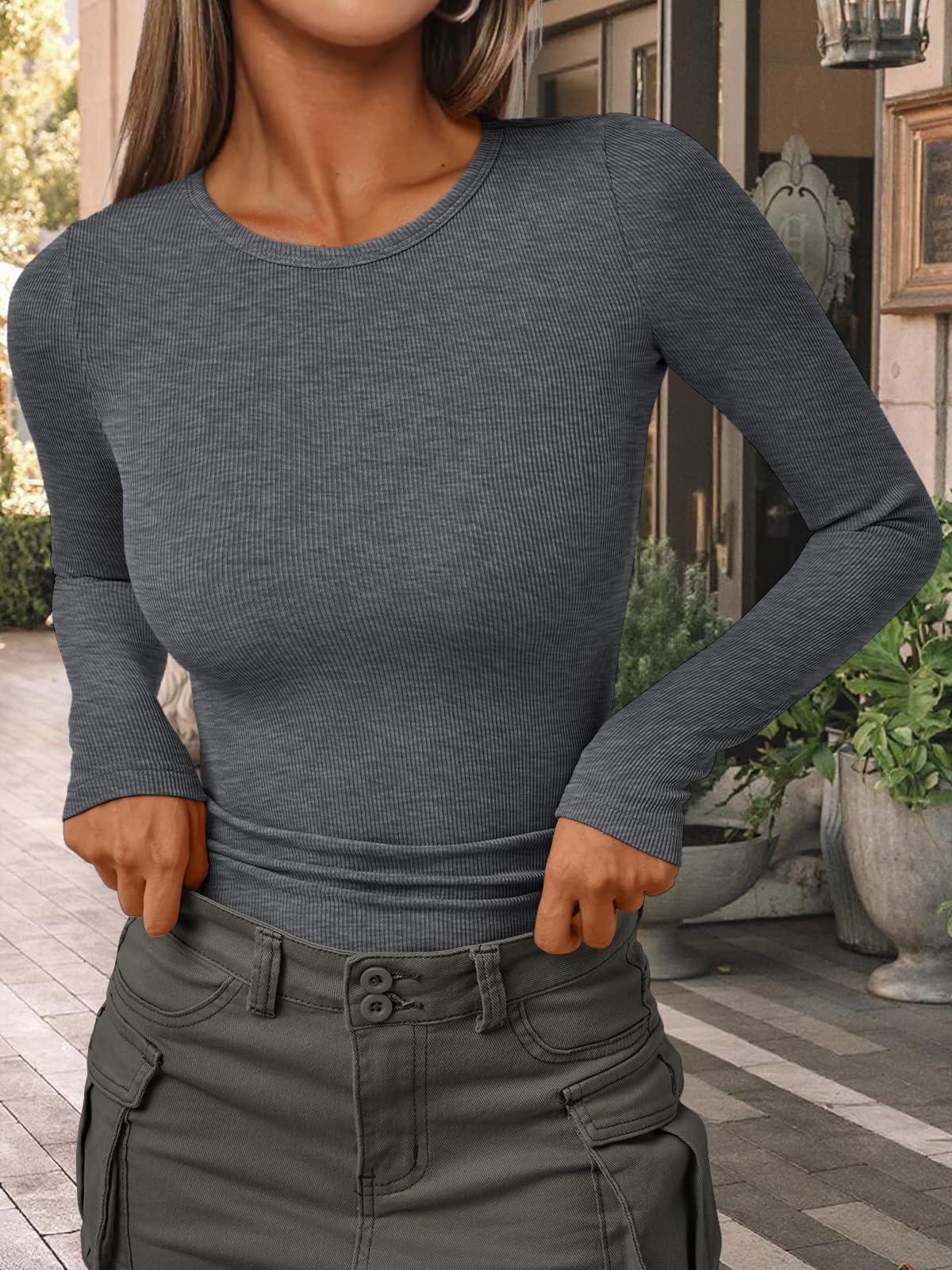Long sleeve ribbed crewneck shirts for women, business casual dressy tops in fall & winter, suit for office,outdoor,home