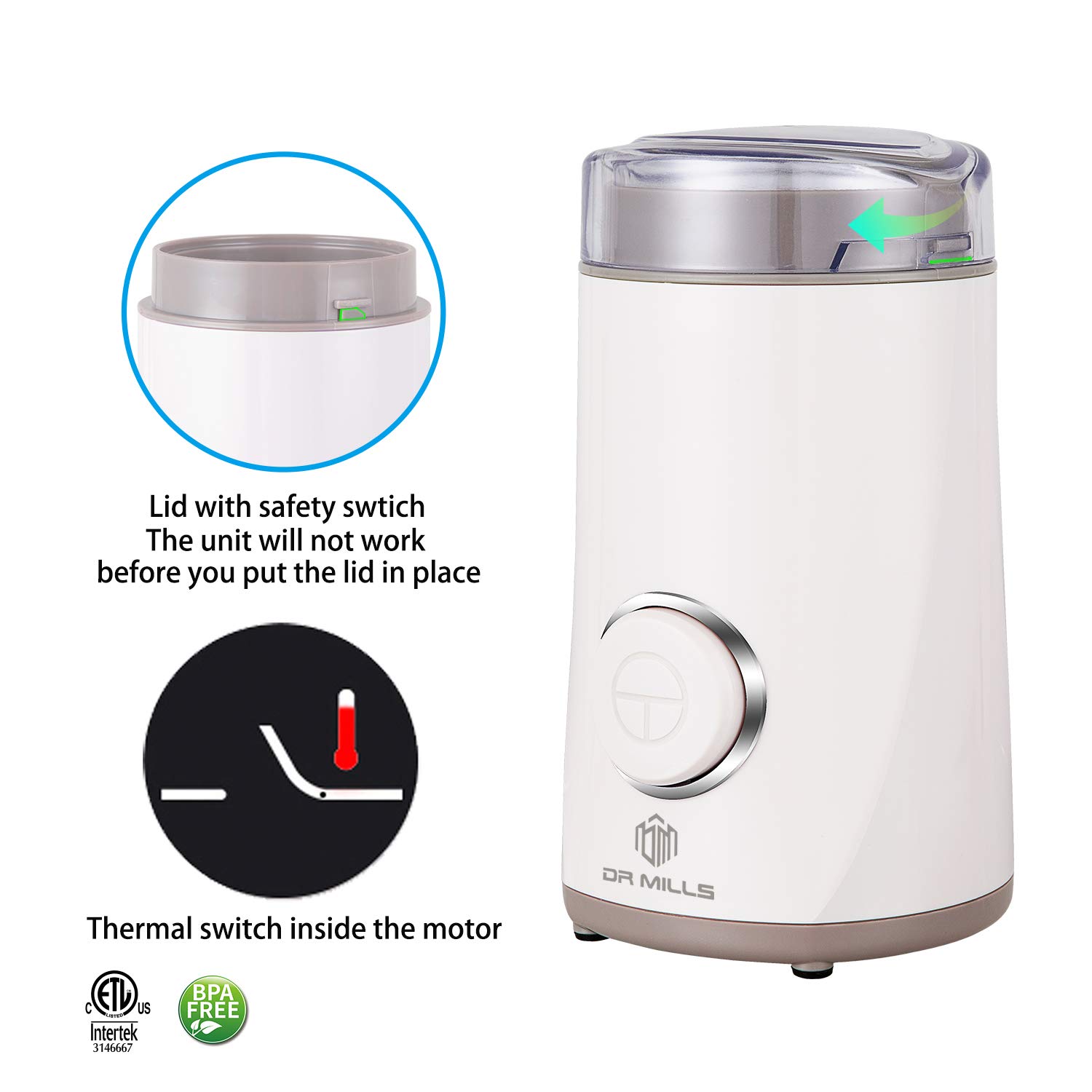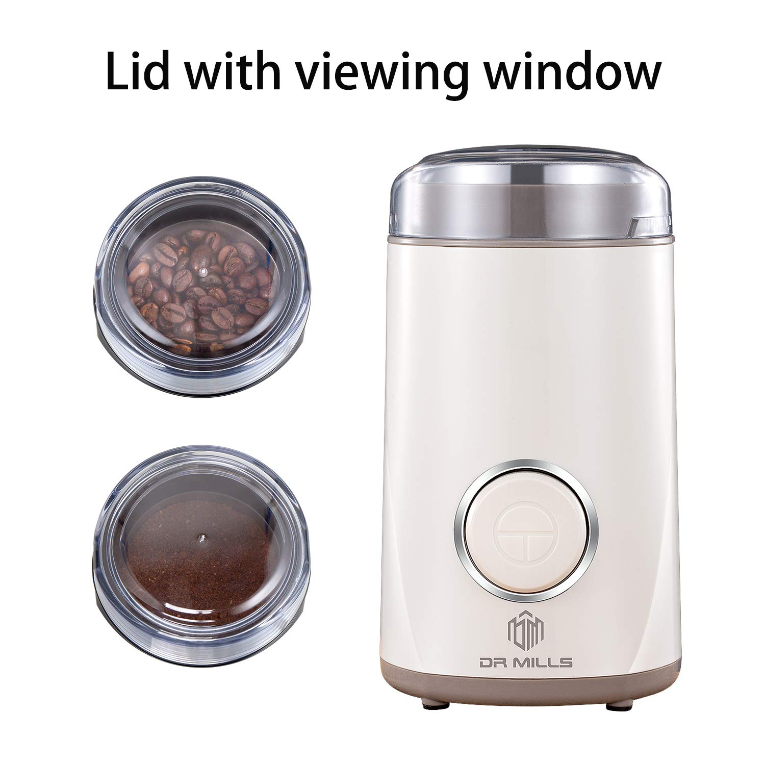 Efficient and Easy:Electric Coffee Grinder with Power 150W,120V,60Hz Durable stainless steel blades grind coffee beans and spices with ease. Achieve your desired coarseness or fineness by Hold the button for working. Can see the grinding effect from the top of the lid.