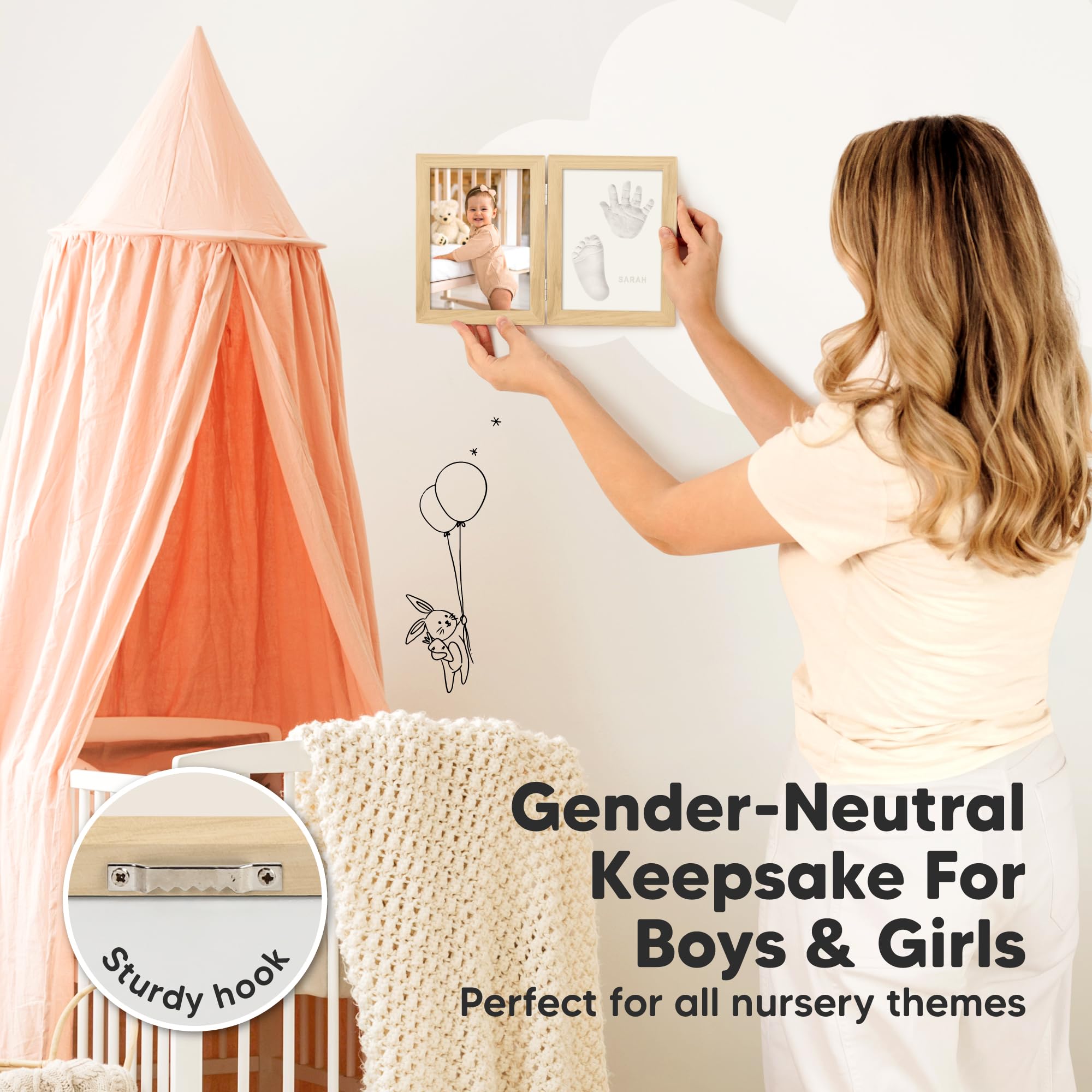 KeaBabies Personalized Baby Hand and Footprint Kit, Quick Dry Clay - Newborn Keepsake Feet and Handprint Kit, Nursery Picture Frame, New Mom Gifts for Baby Showers & Registry (Ash Wood)