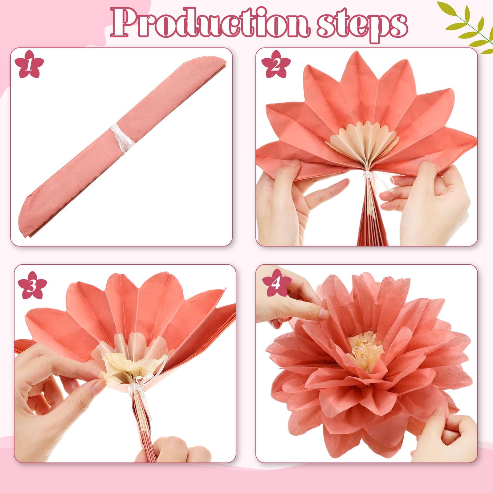 Easy to Use: each mexican paper flower is already folded and tied in advance; First take out the tissue paper flowers, make sure the ribbon is in the middle of the crepe paper, gently open the crepe paper layer by layer, and you will get full mexican paper flowers; Care needs to be taken not to pull too hard as this can damage the wrinkled paper; At the same time, please do not untie the white ribbon in the middle