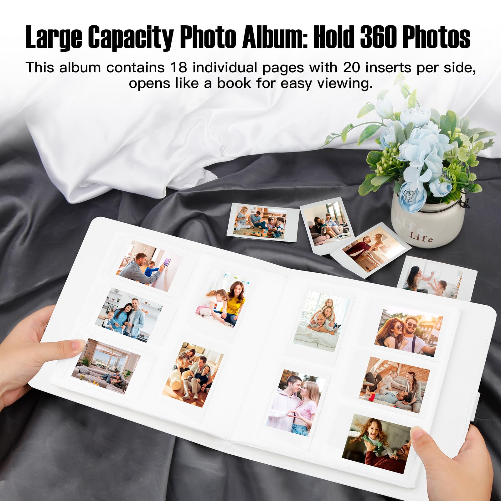 DISPLAY 360 PHOTOS HOLD 360 PICTURES IN TOTAI: this album contains 72 individual pages with 5 photos per page, opens like a book for easy viewing. Best for weddings, engagements, graduations, baby photos or other arty obsessions.