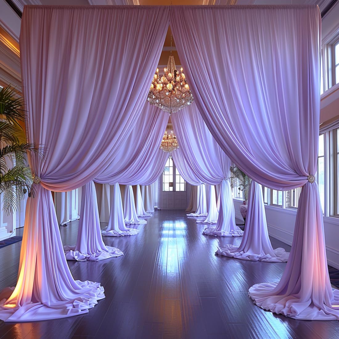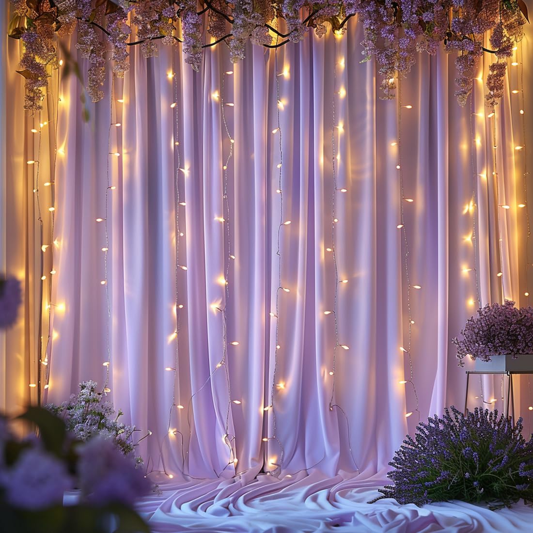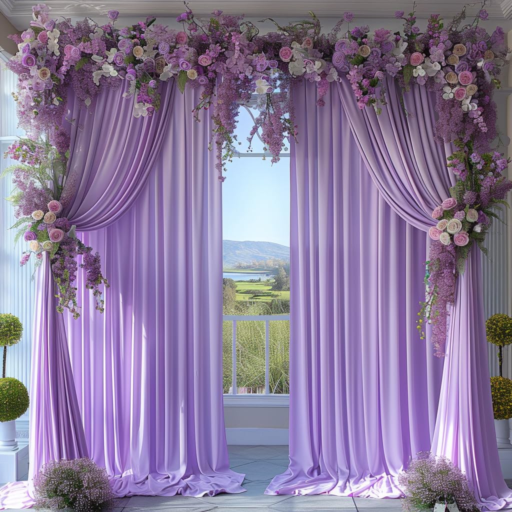 High-Quality Wrinkle-Free Fabric —— Crafted from premium 100% high-quality polyester fabric, this lavender wedding backdrop offers a silky smooth texture, and an irresistibly soft touch akin to milk. The backdrop Curtains for wedding droops naturally and the texture is very good, will make your wedding more elegant