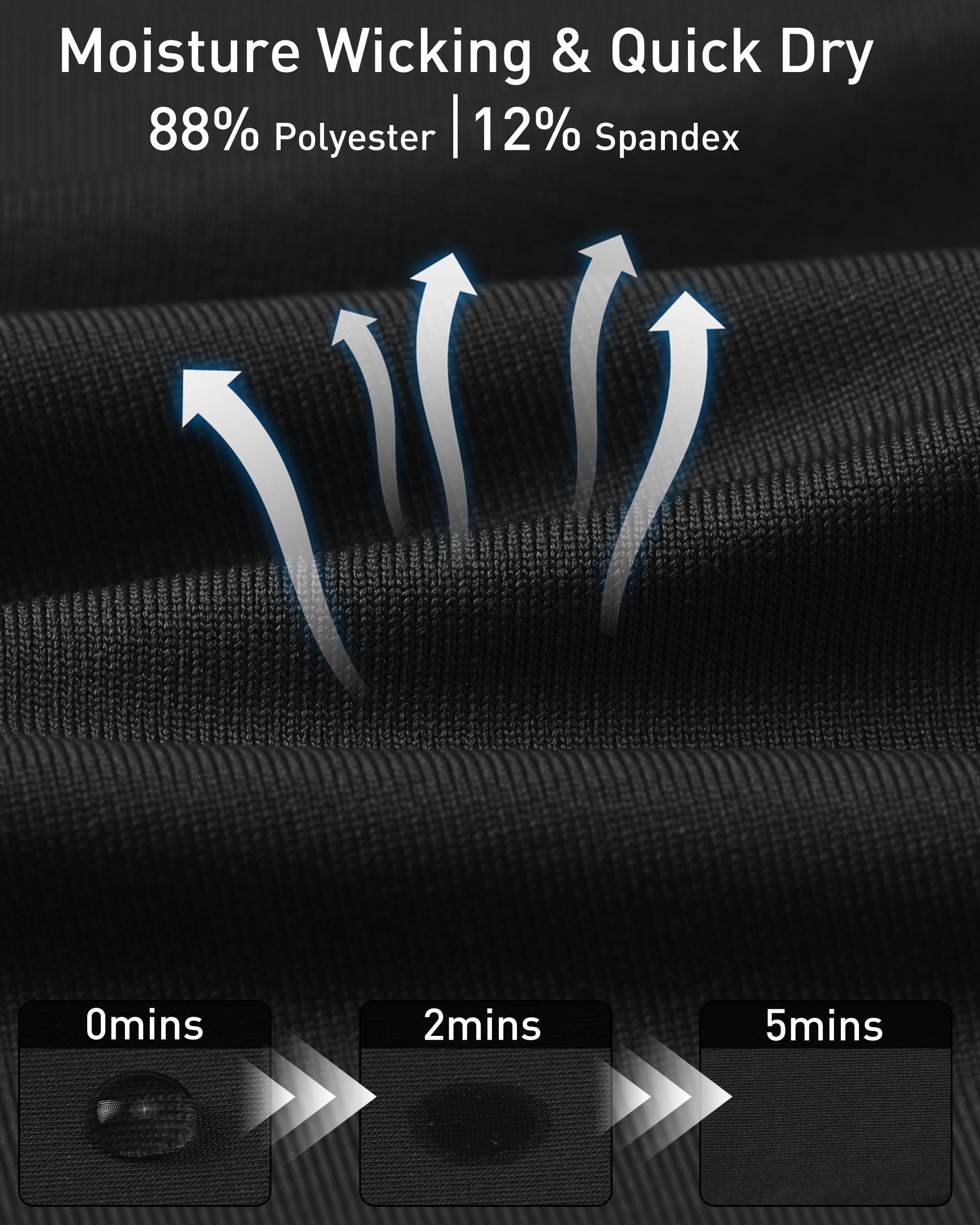 Performance Compression Fit: Made from a high-elastic blend of 88% Polyester and 12% Spandex, this compression shirt wraps your muscles for firm support, reducing vibration and fatigue during exercise, helping you peak high performance and recover faster