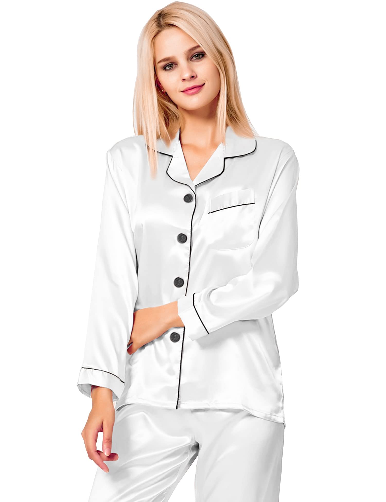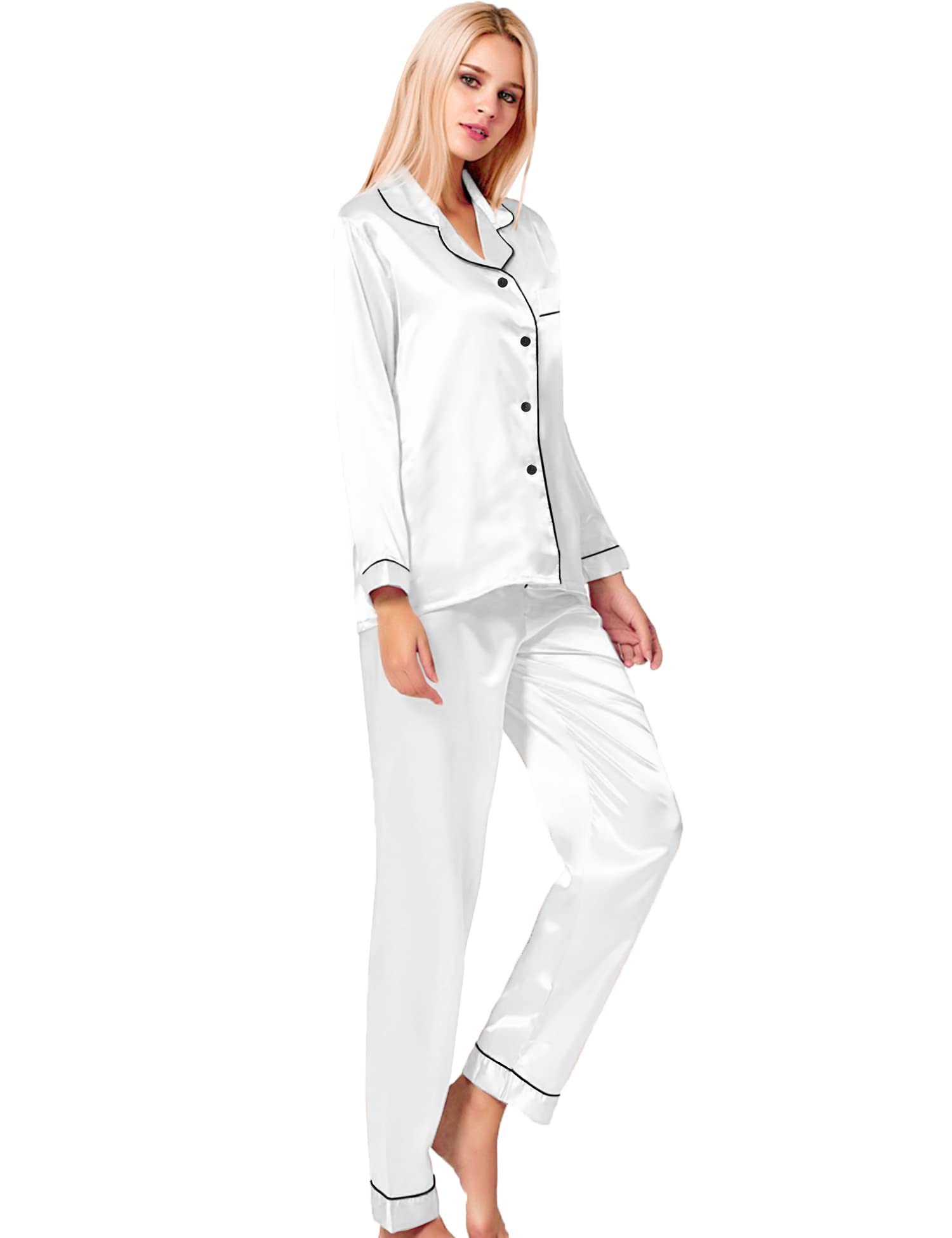 Gift: Women's silk pajamas for women is made of high quality imitation silk fabric, it is soft and natural shiny. Great Choice For your Wife, Girlfriend, Mother, Sister and Doughter as a Birthday gift and Great Present for New Year, Valentine's Day, Christmas Day, Bridal Party Gifts, Honeymoon Vacation or other Festivals or Anniversaries.