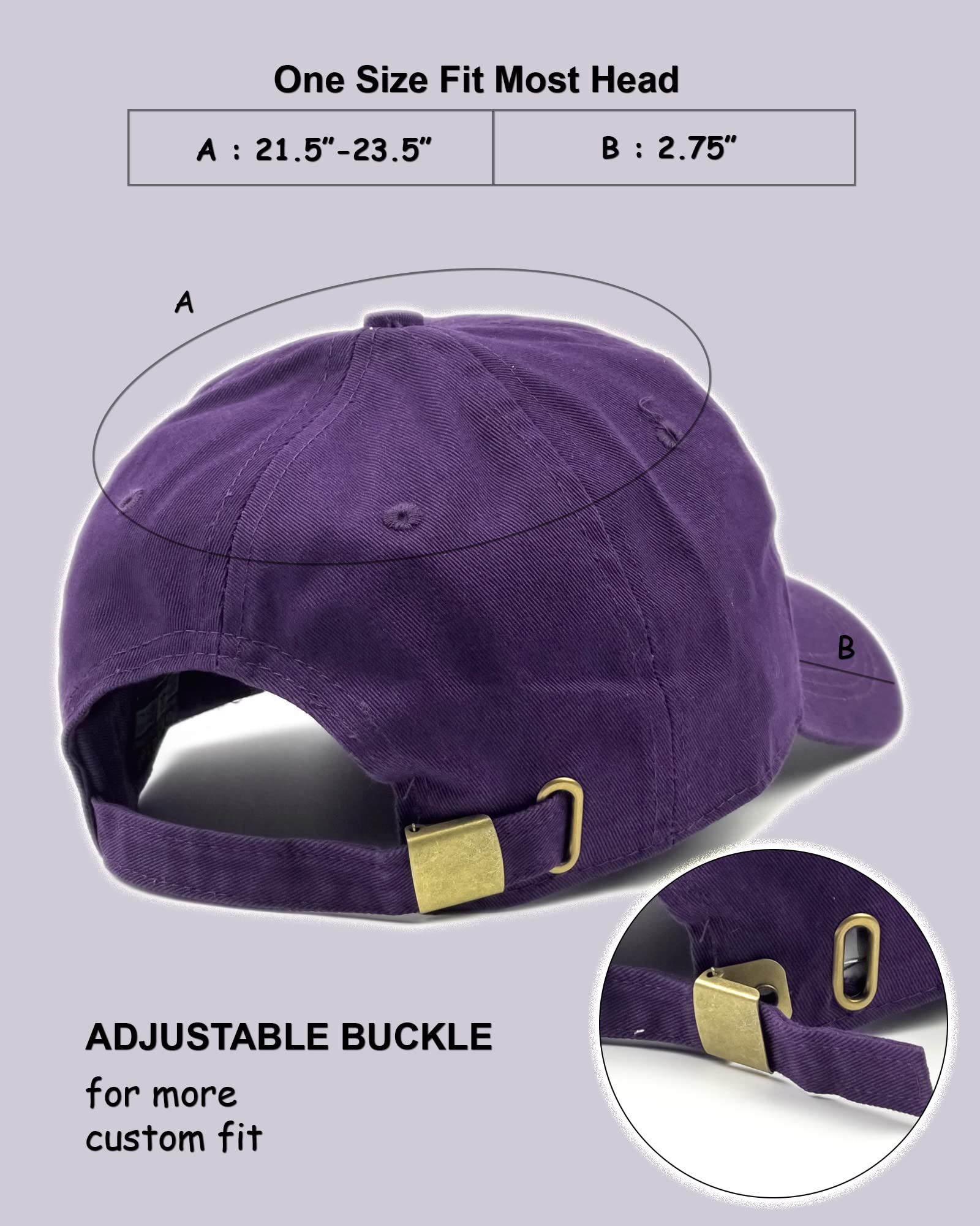Adjustable Metal Buckle Back Closure : Great Fit for All Head Size. Hat Size Measurements : 21.5" - 23.5"