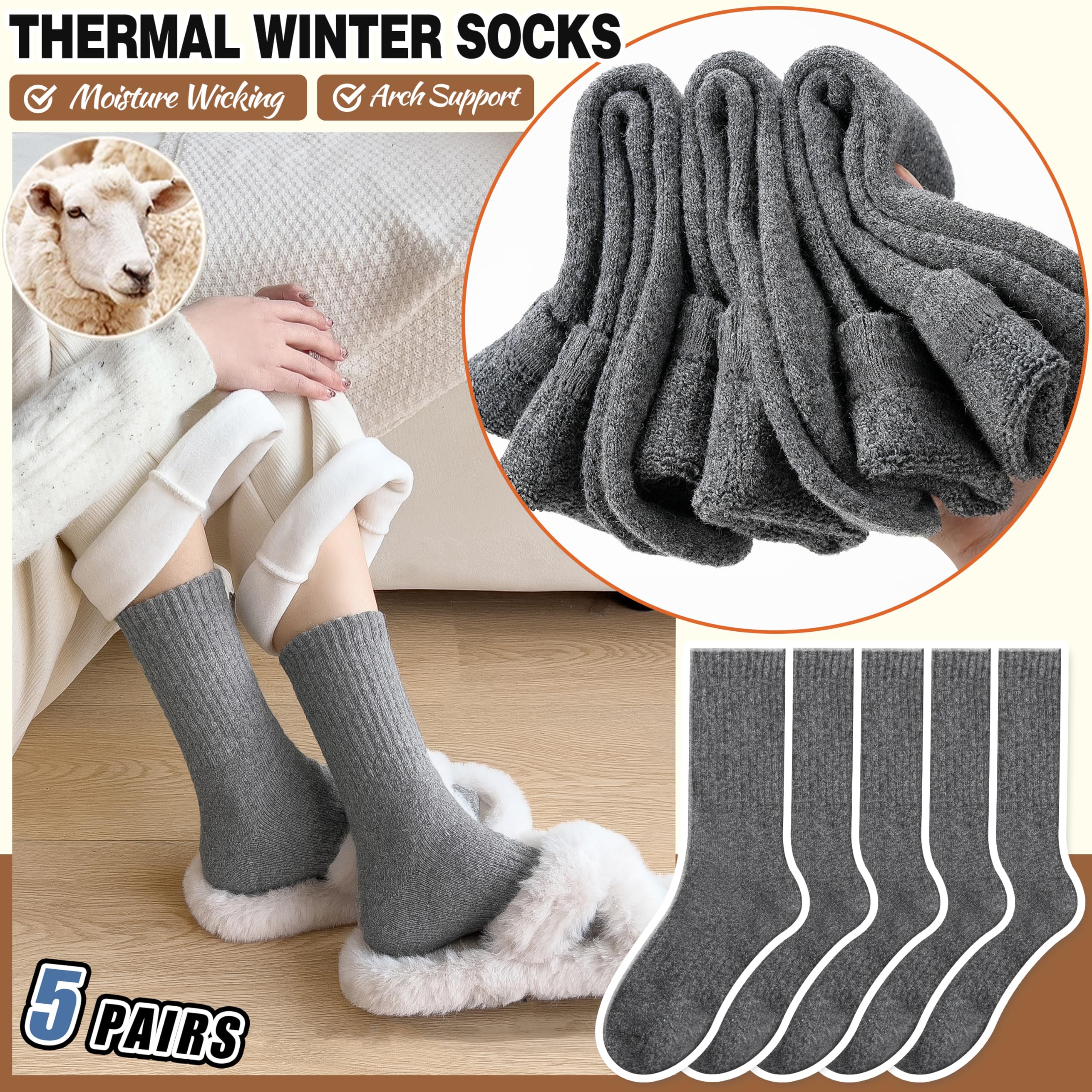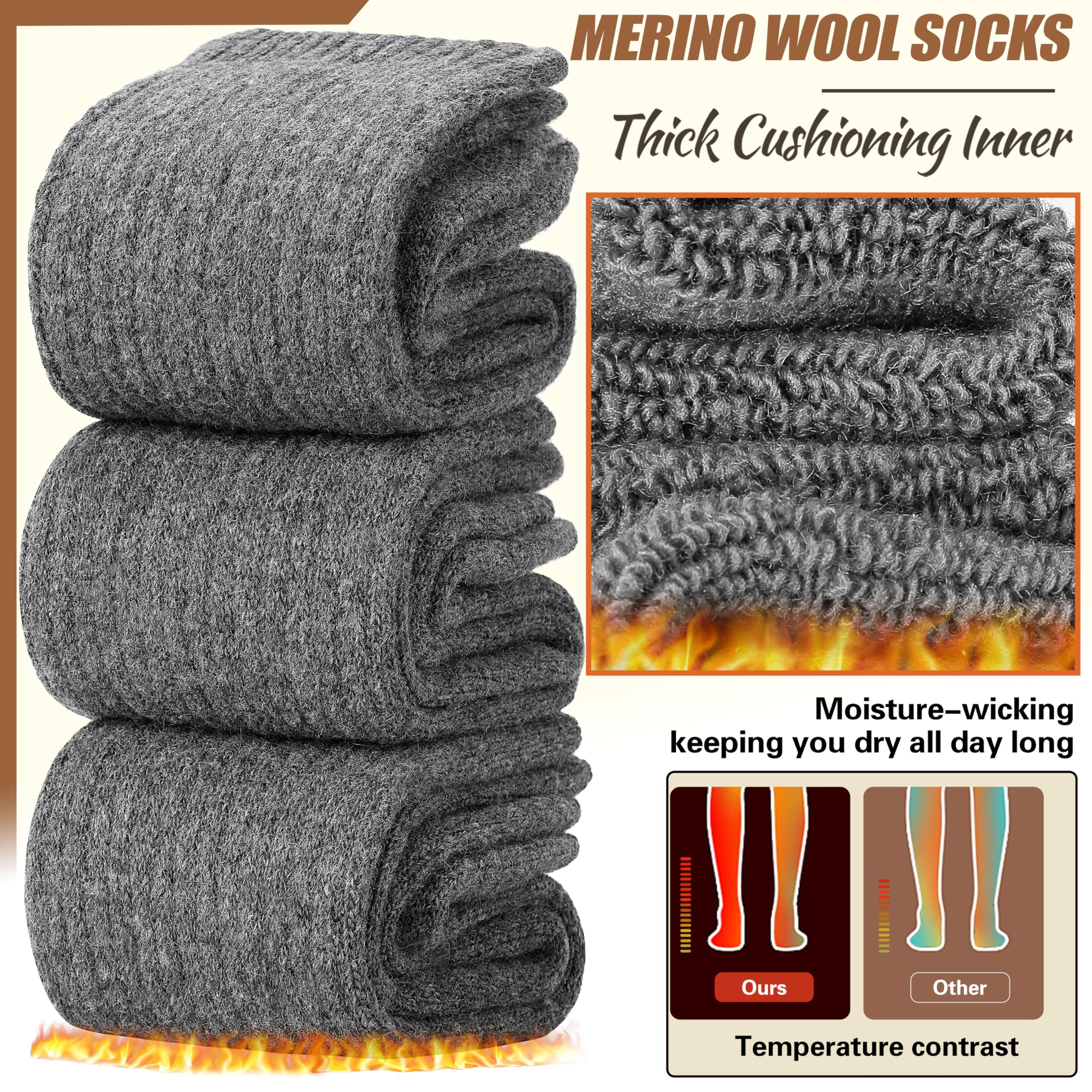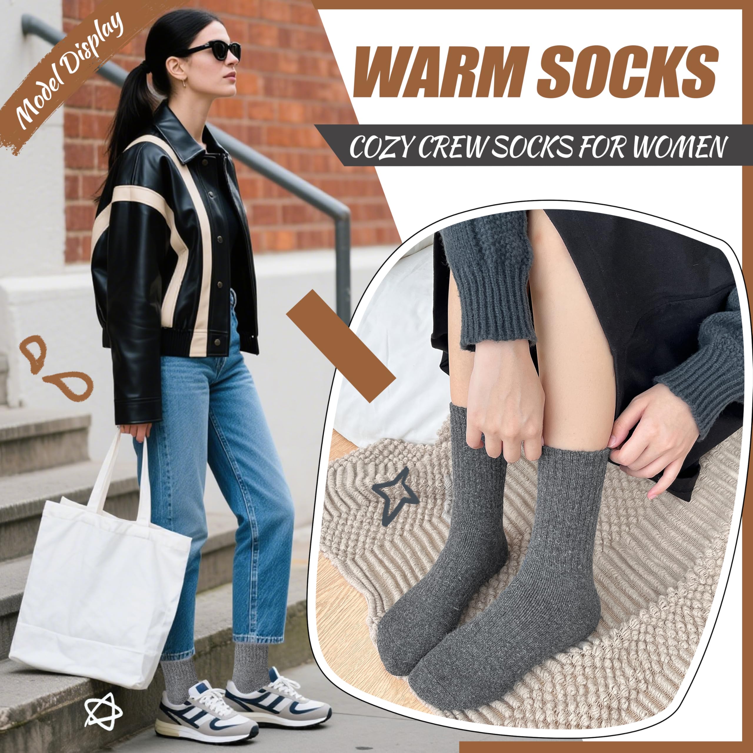 HIGH QUALITY : EBMORE fashion women wool socks are blend of 55% Wool, 25% Cotton, 15% Polyester, 5% Spandex. It’s a premium High Quality merino wool socks, so the socks is very soft, heavy but breathable, cozy, fuzzy inner lining and will keep your feet comfortable and warm.