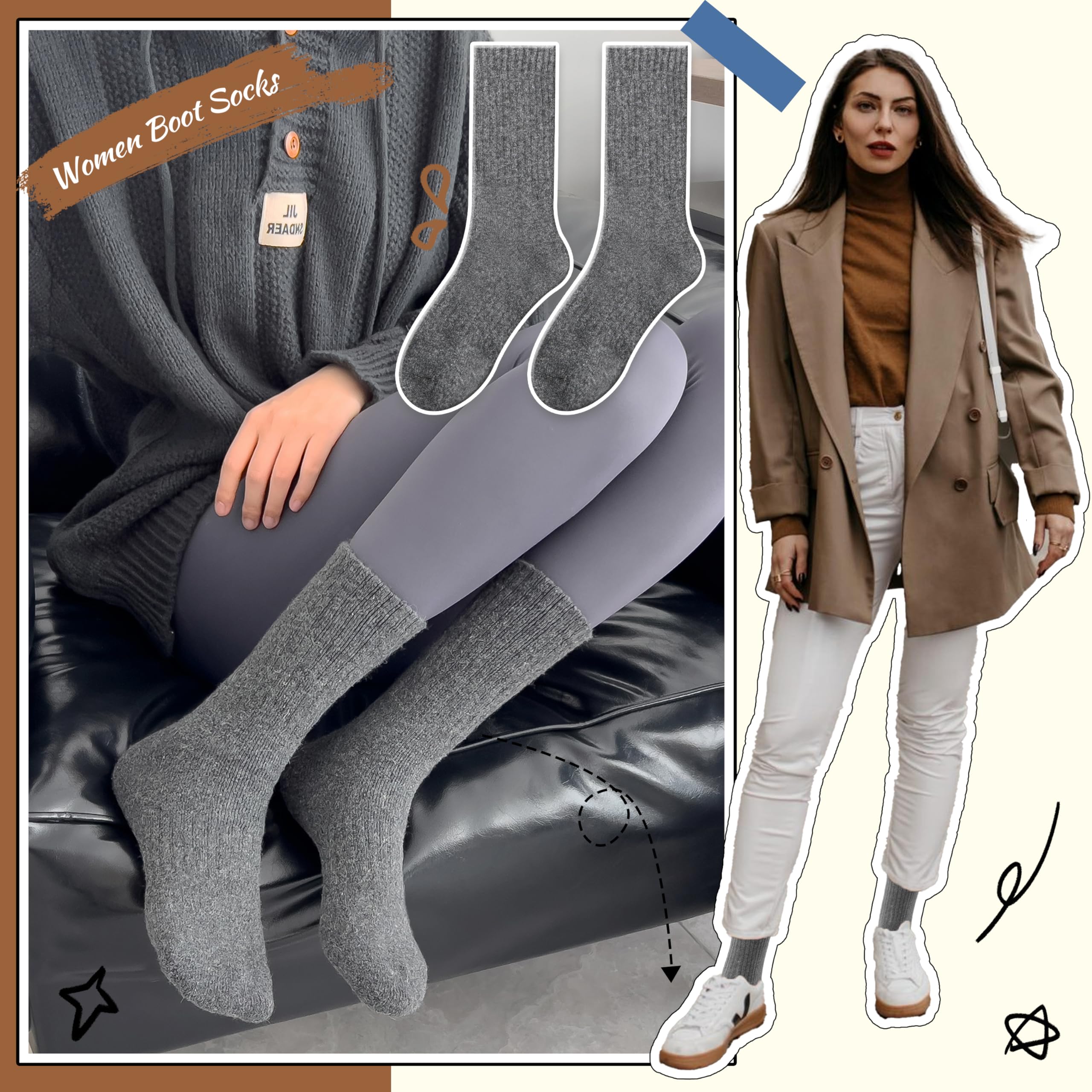 BREATHABLE & COMFORTABLE : The materials of this stylish socks for women and teen girls is very soft and comfortable, Fuzzy inner design will keep your feet warm and the breathable and soft fabric will keep your feet feel comfortable all the day.