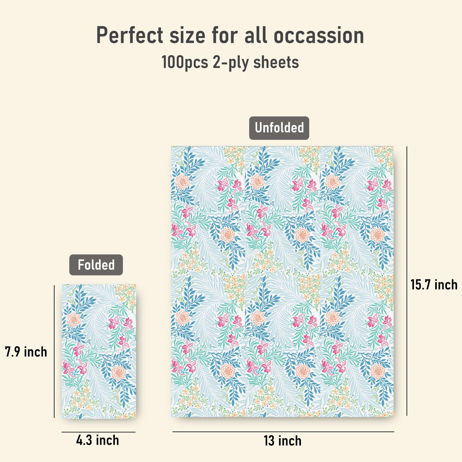 100 Pack Towel Napkins Size: folded 4.3 x 7.9 inches / unfolded 12.9 x 15.7 inches Pattern: Vintage Bird Wide Use: Ideal for bathroom, powder room vanities, kitchen counter top and party decor