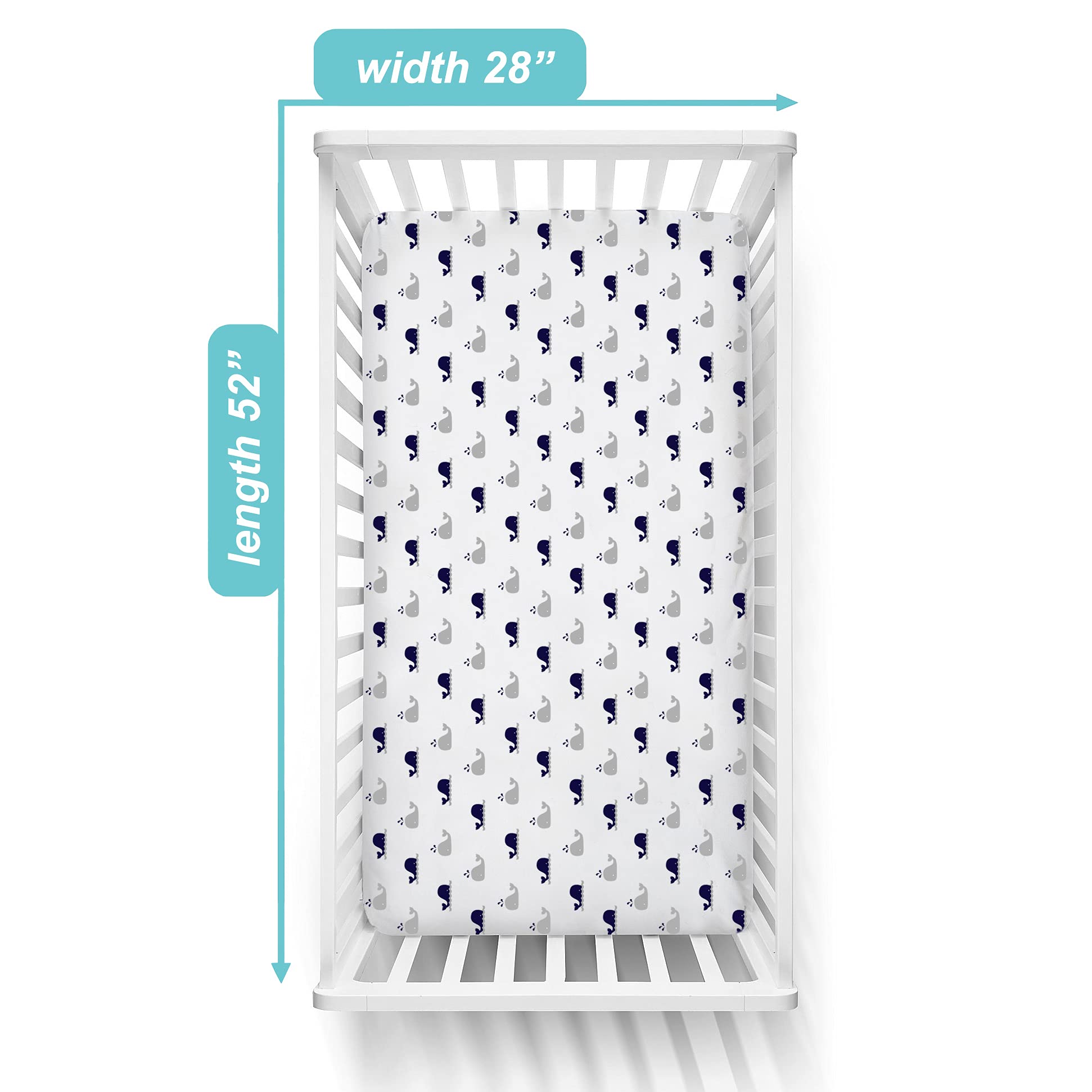 Perfect Fit & Secure Coverage: Made from 100% Cotton Jersey and measuring 28” x 52” with a depth of 9 inches, our crib sheets snugly fit most standard crib mattresses and toddler bed mattresses.