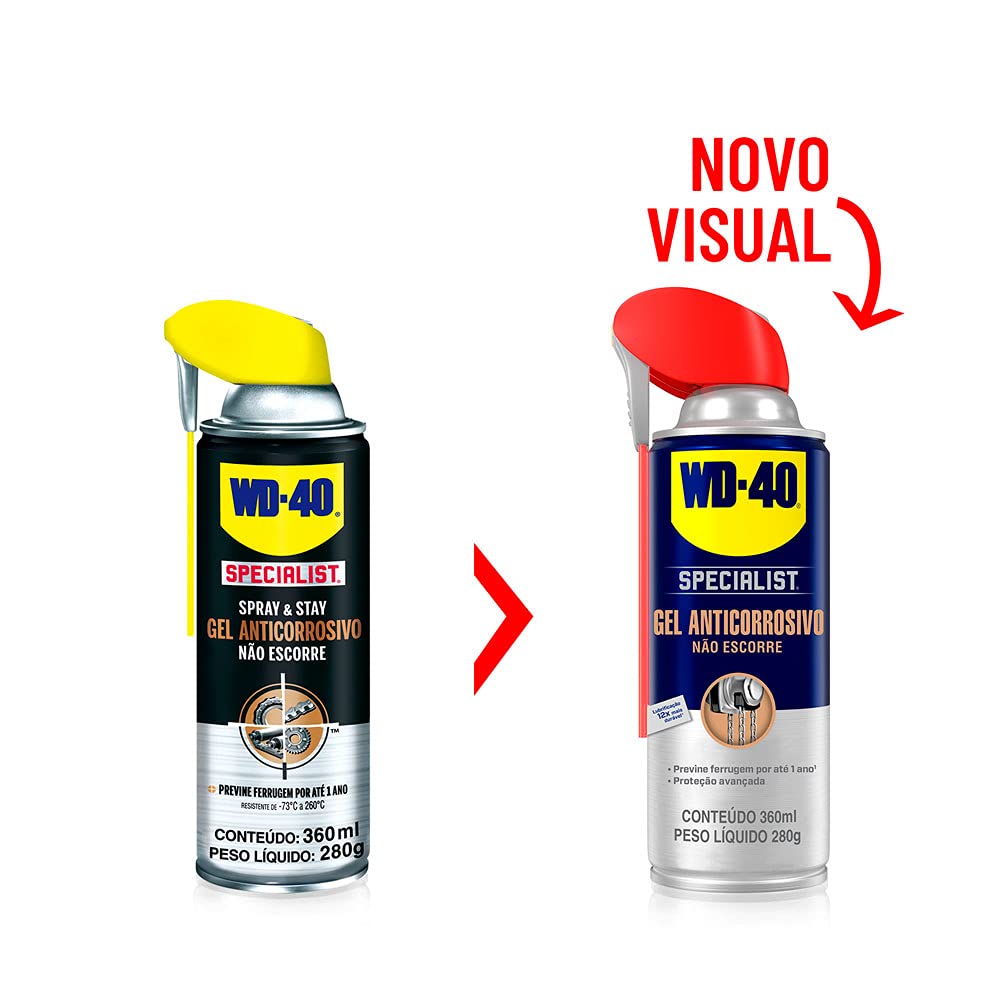 A thick gel lubricant that provides long-lasting lubrication and won't run or drip. WD-40 Specialist Gel Lube No-Drip Formula offers long lasting lubrication. Designed for superior protection that resists water and displaces moisture to prevent rust for up to one year* This spray gel lubricant goes on thick and stays where you spray, making it ideal for use on vertical surfaces and offers non-fling for moving parts such as gears, bearings, cables, chains, rollers and more. Once applied, it withstands temperature ranges from -100°F to 500°F. Safe to use on multiple surfaces including metals, plastic and rubber. - Lubricates 15X longer than the competition** - Protects against rust and surface corrosion up to 6X longer than the competition*** - Perfect for vertical surfaces - 50-state VOC compliant *Independent tests conducted in salt spray and humidity chamber. Results may vary depending on extreme conditions **Test Lab: Petro-Lubricant Laboratories Inc. (Lafayette, NJ): ASTM D5620A: Test date: 04/2020 ***Test Lab: WD-40 Co. Technical Center (Pine Brook, NJ); ASTM B117; Test date: 03/2020