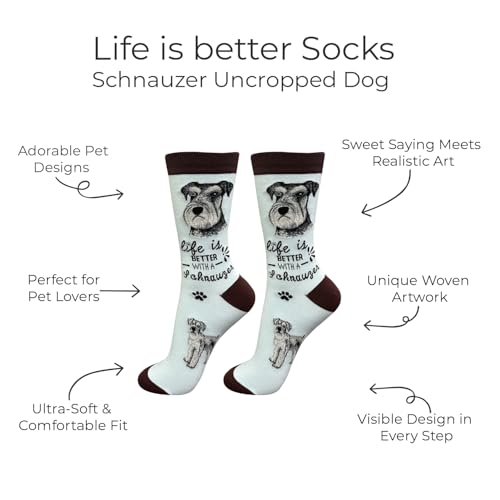 Description Introducing our collection of adorable and vibrant pet lover socks designed exclusively for pet lovers! These funny socks are the epitome of cuteness and novelty, guaranteed to bring a smile to your face. Big image of dog head woven on both sides on the socks and full body image woven on the bottom of the socks with a cute saying that says life is better with Dog. These socks are made in South Korea, These funny socks are made from 200 needle count machines which give life-like detail of your favorite pet. Step up your sock game with our adorable and hilarious Dog Socks, designed especially for pet lovers! These novelty socks are the perfect addition to your collection, featuring cute and silly designs that are bound to make you smile. Made with high-quality materials, these fun socks offer both comfort and style. They add a playful and fashionable touch to your everyday outfits, whether you're dressing up or keeping it casual. Whether you're a dog mom, a dog dad, or simply a dog lover, these socks are a must-have. With their delightful designs and comfortable fit, these socks are a fashionable treat for pet lovers and make great novelty gifts and dog mom gifts.