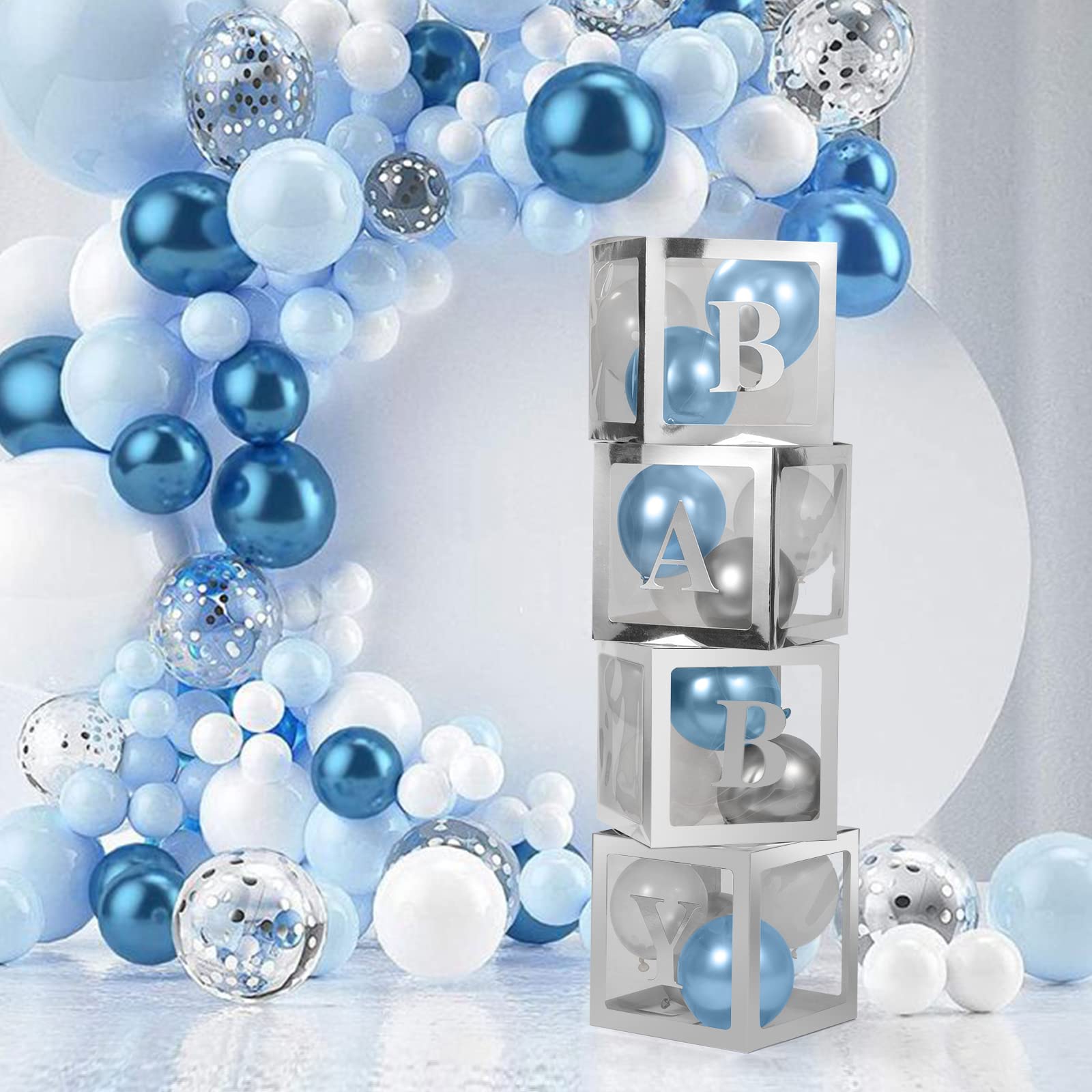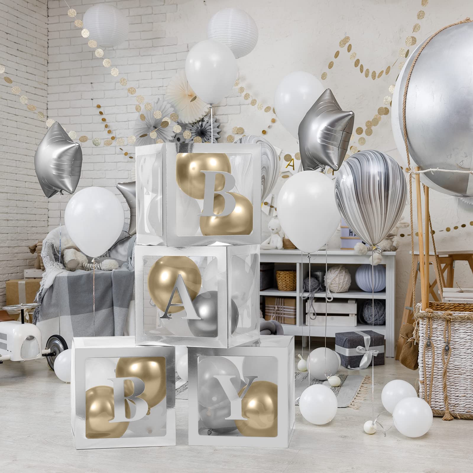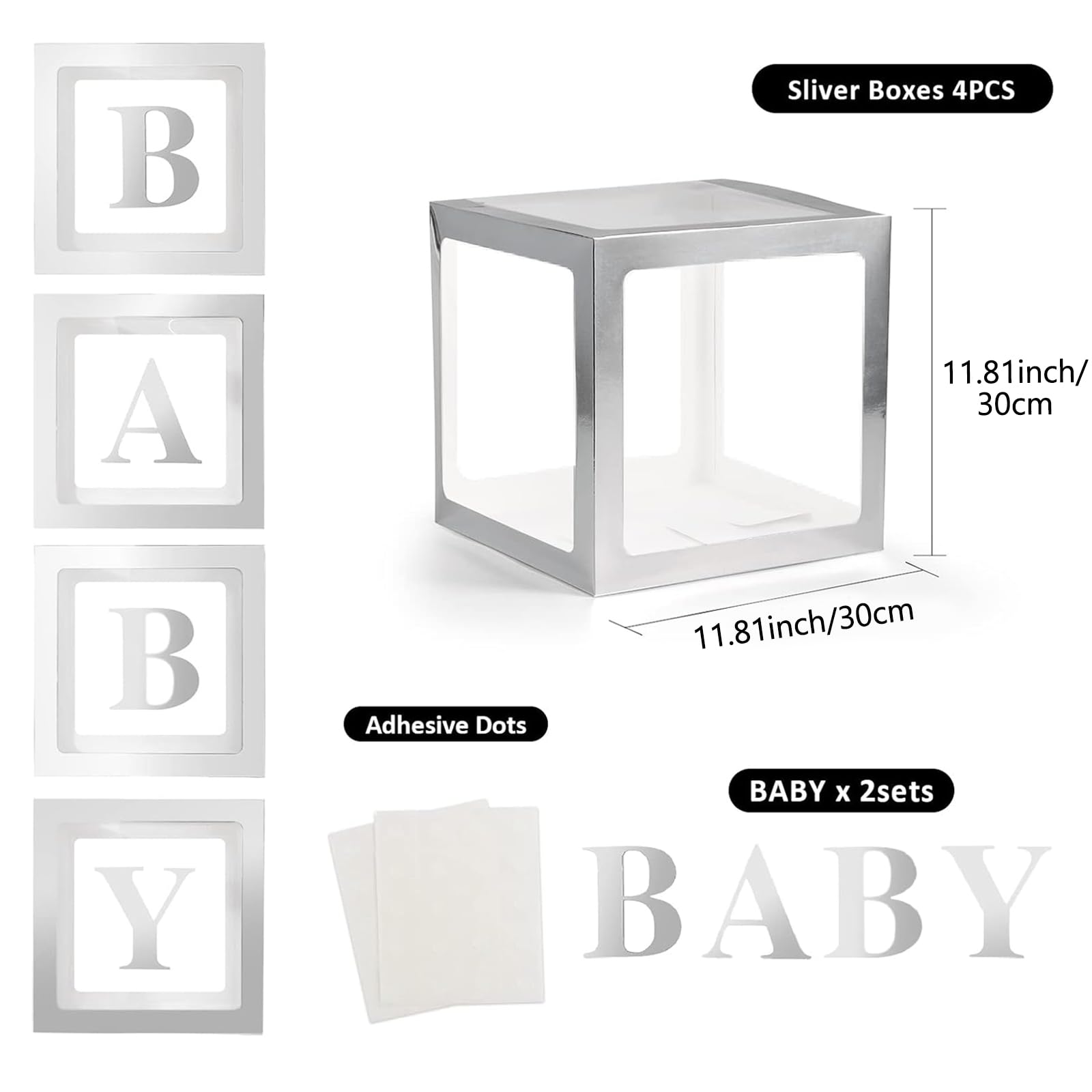 Package Included: Voircoloria DIY transparent balloon boxes set includes 4pcs clear balloon boxes, 2set BABY letters and 2set adhesive dots