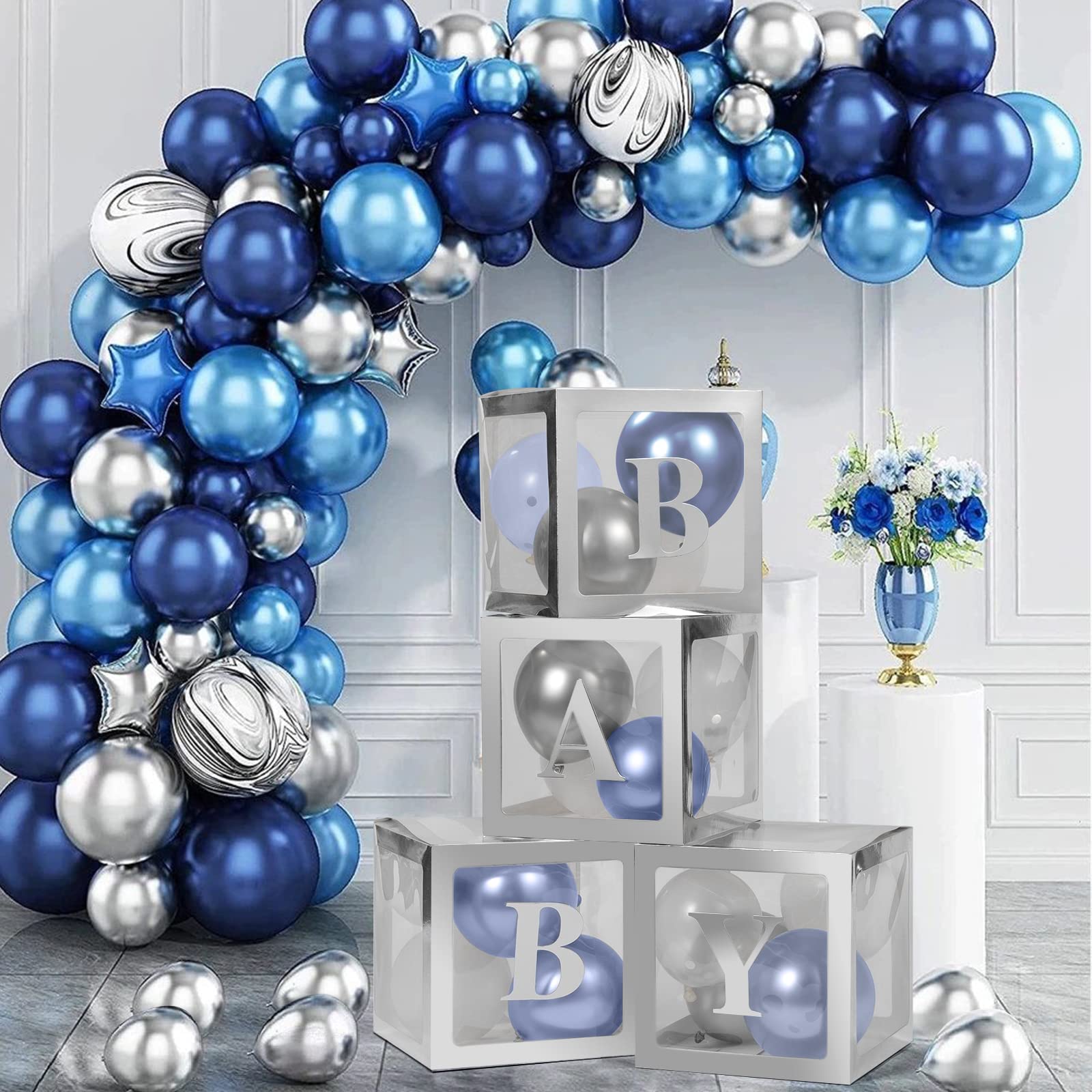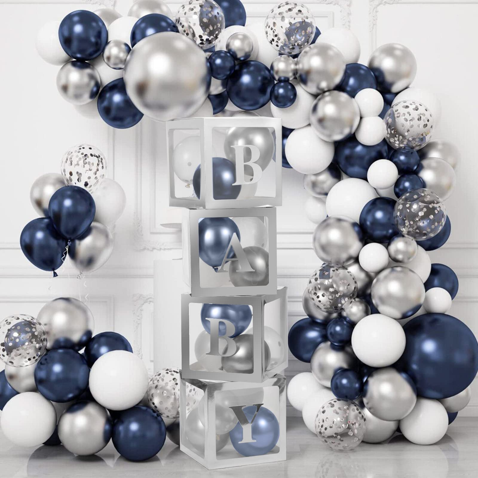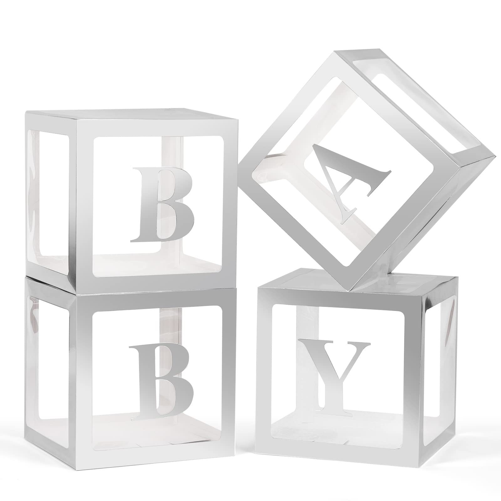 Package Included: Voircoloria DIY transparent balloon boxes set includes 4pcs clear balloon boxes, 2set BABY letters and 2set adhesive dots
