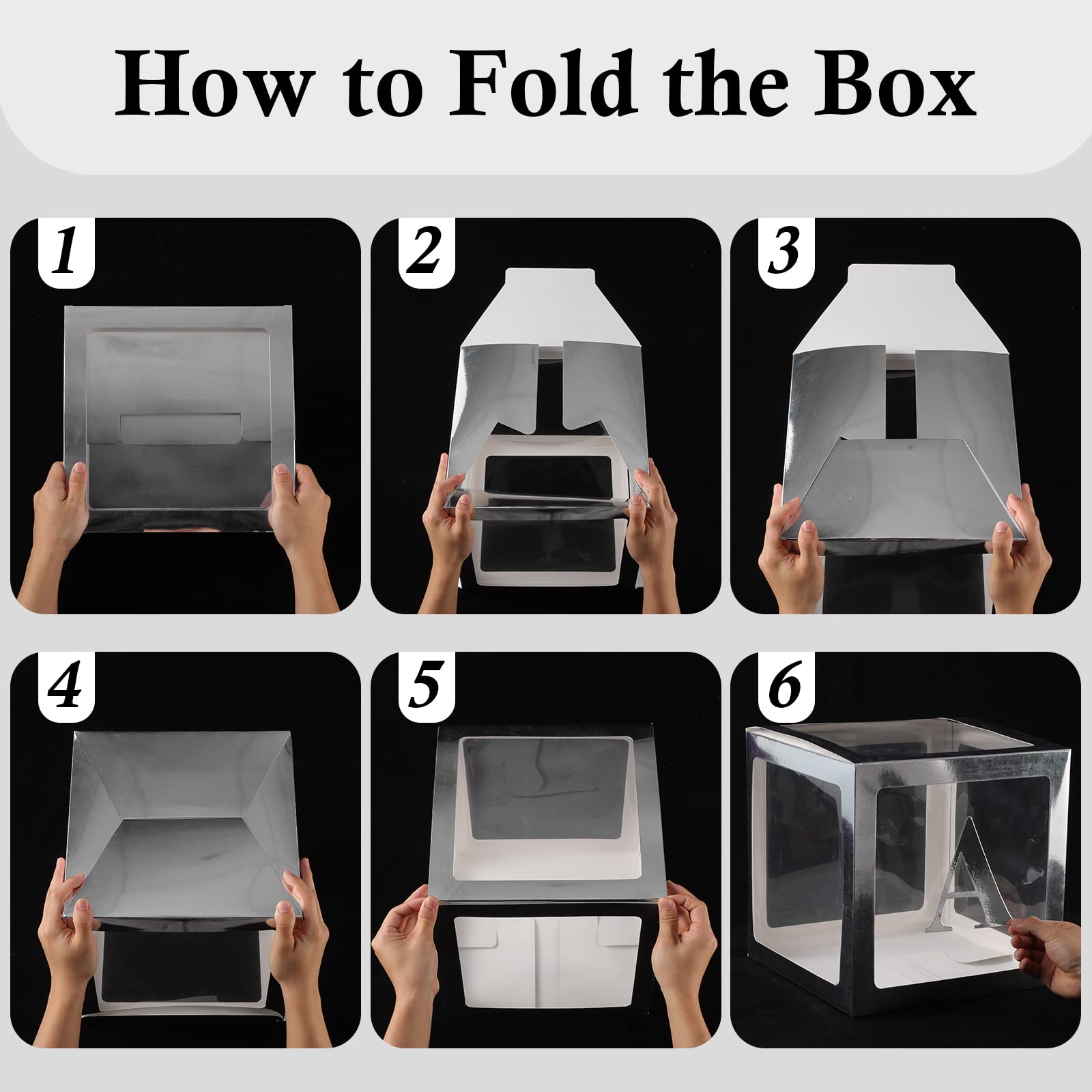 Easy to Assemble: According to the introduction in our product picture, firstly fold baby box, secondly use adhesive dots to paste the letter you want to the center of the transparent window, finally the balloons are putted into the box. You only need to spend 5 minutes, your party becomes easier