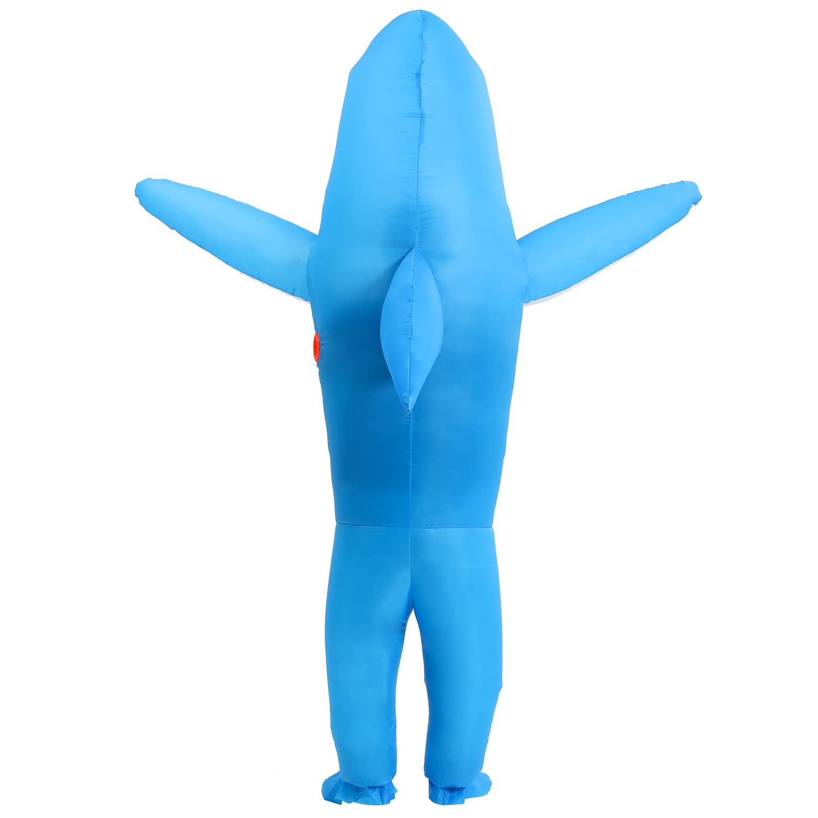 SIZE AND COLOR:The inflatable Shark body suit is plus size design suitable for the kids between 3.9′(1.2M) to 5.2′(1.6M),color design:Blue,fashion and unique.
