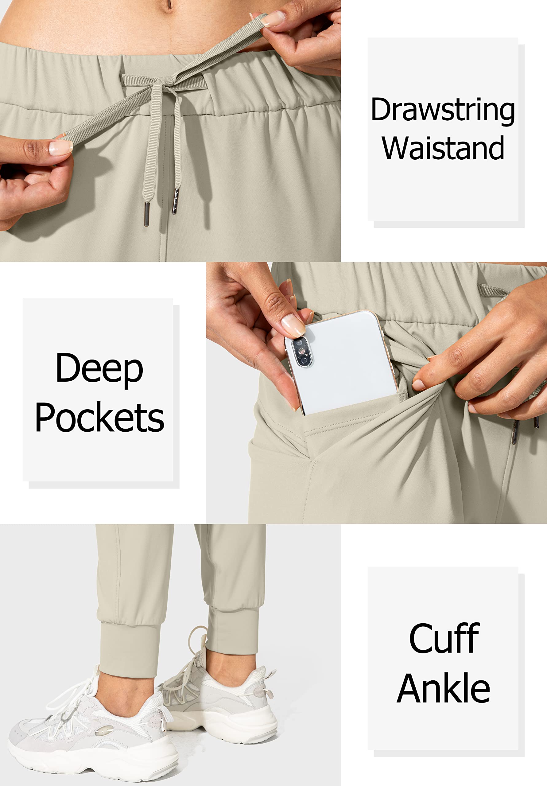 Fabric: 75% Polyamide/25% Elastane. Santiny womens joggers pants made of Soft,comfortable and four-way stretch fabric provide you with maximum comfort,support and coverage in your workout.