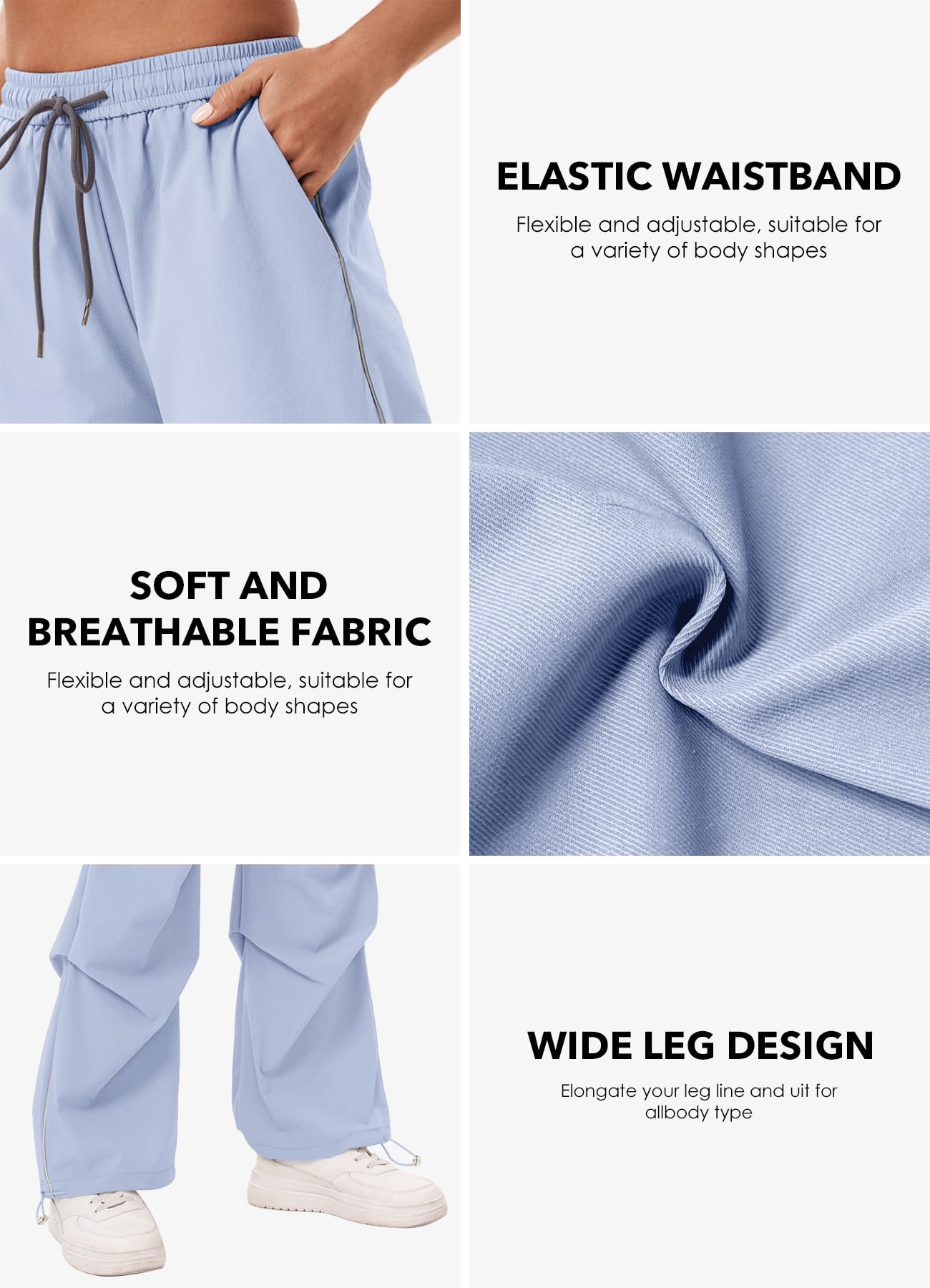 Adjustable Drawstring Waist & Hem: Featuring an elastic high waist with an adjustable drawstring and customizable hems, these wide leg track pants allow flexible styling while maintaining a comfortable fit.