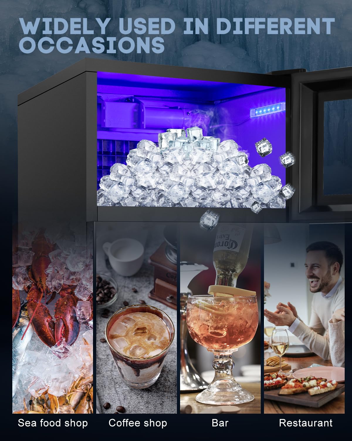 Rapid Ice Production & High Capacity:Our upgraded commercial ice maker features a powerful compressor that produces 45 clear ice cubes in just 10 to 20 minutes, generating up to 130 lbs of ice daily. With a spacious 35 lbs storage bin, it’s perfect for both home and commercial use.