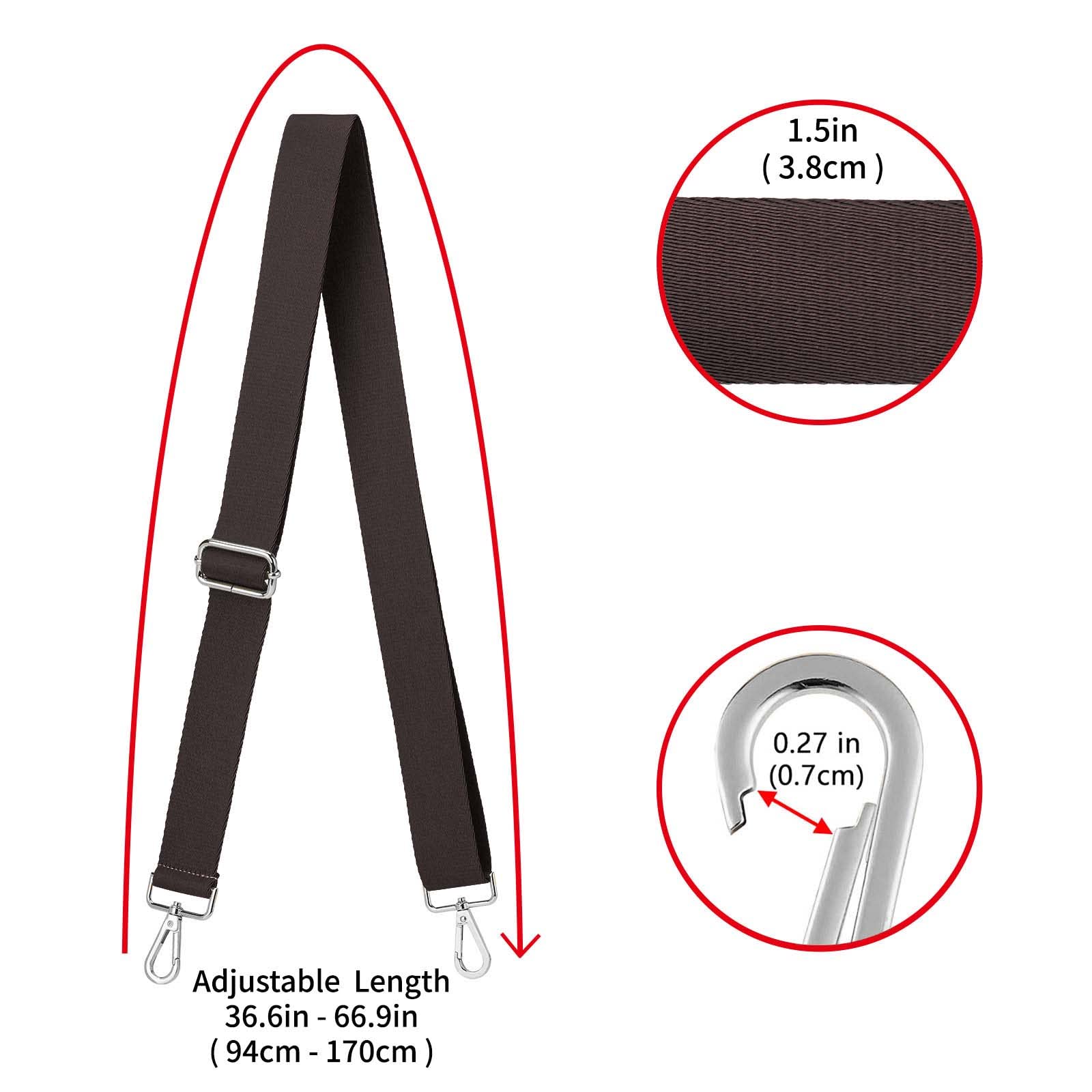 Adjustable - Adjustable length(including snap hooks): 36.6"~66.9"(94cm-170cm), it is long enough to wear on the shoulder or cross body, use it as a decorative accessories for your bag also a good choice.