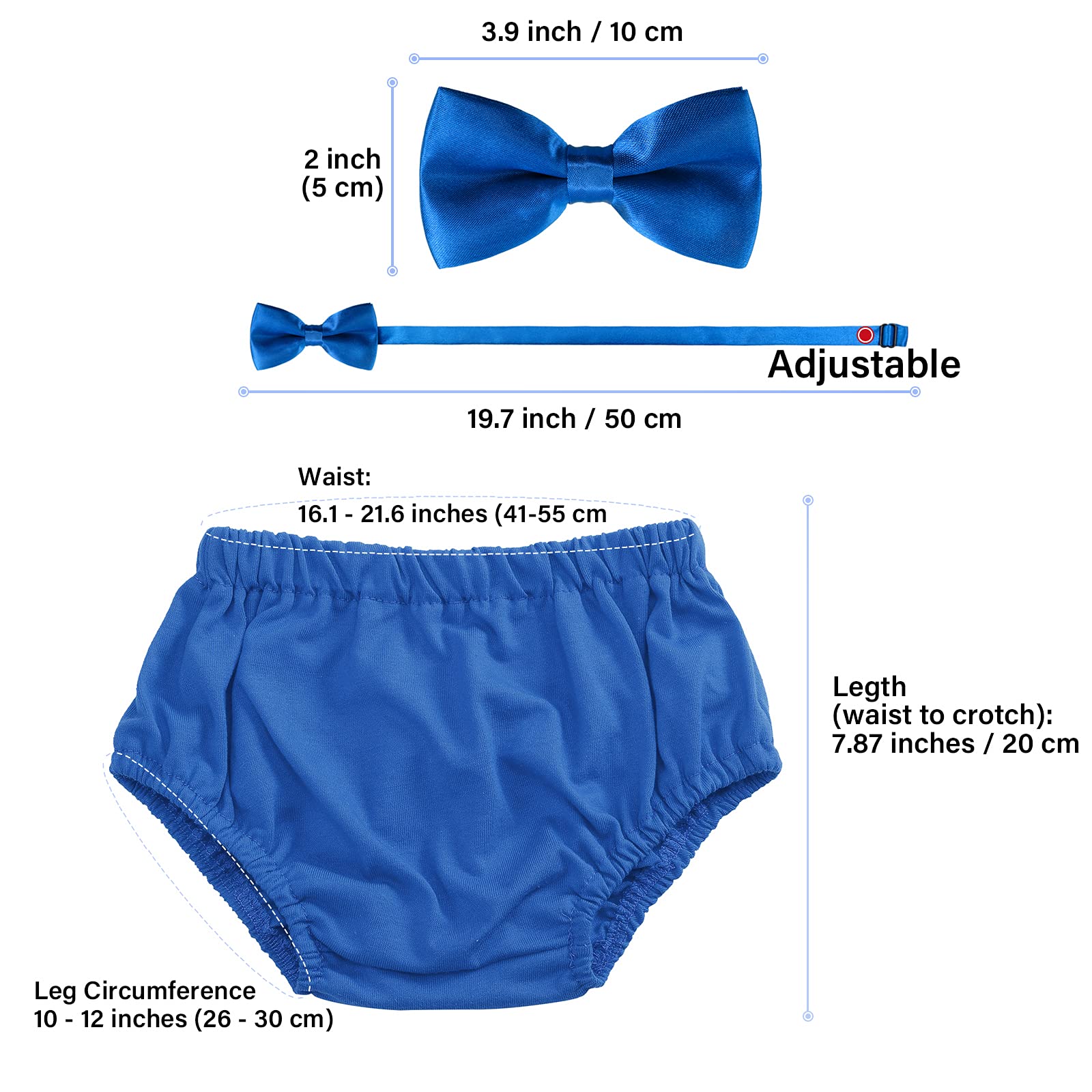 【Size】: Cake pants:waist: 16.1-21.6"/41-55cm, length (waist to crotch): 7.87"/20cm. Suspenders:max length: 25.0"/63.5cm. Bowtie: the 2 * 4'',circumference: 12-17.7"/30-45cm. Crown: 7 x 8CM, 2.7" x 3.1"