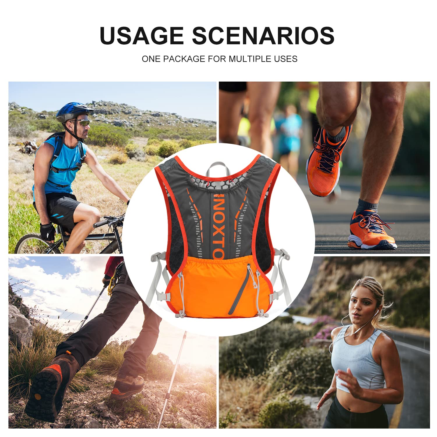 ❤【ERGONOMIC AND CONTOURED DESIGN】INOXTO Hiking Backpack Water Bladder Vest Kit aligns your back while gently protecting your muscles.the Ventilated Mesh Cover keeps air circulating and prevent discomfort from accumulated heat,providing superior air circulation and breathability to keep your back cool.