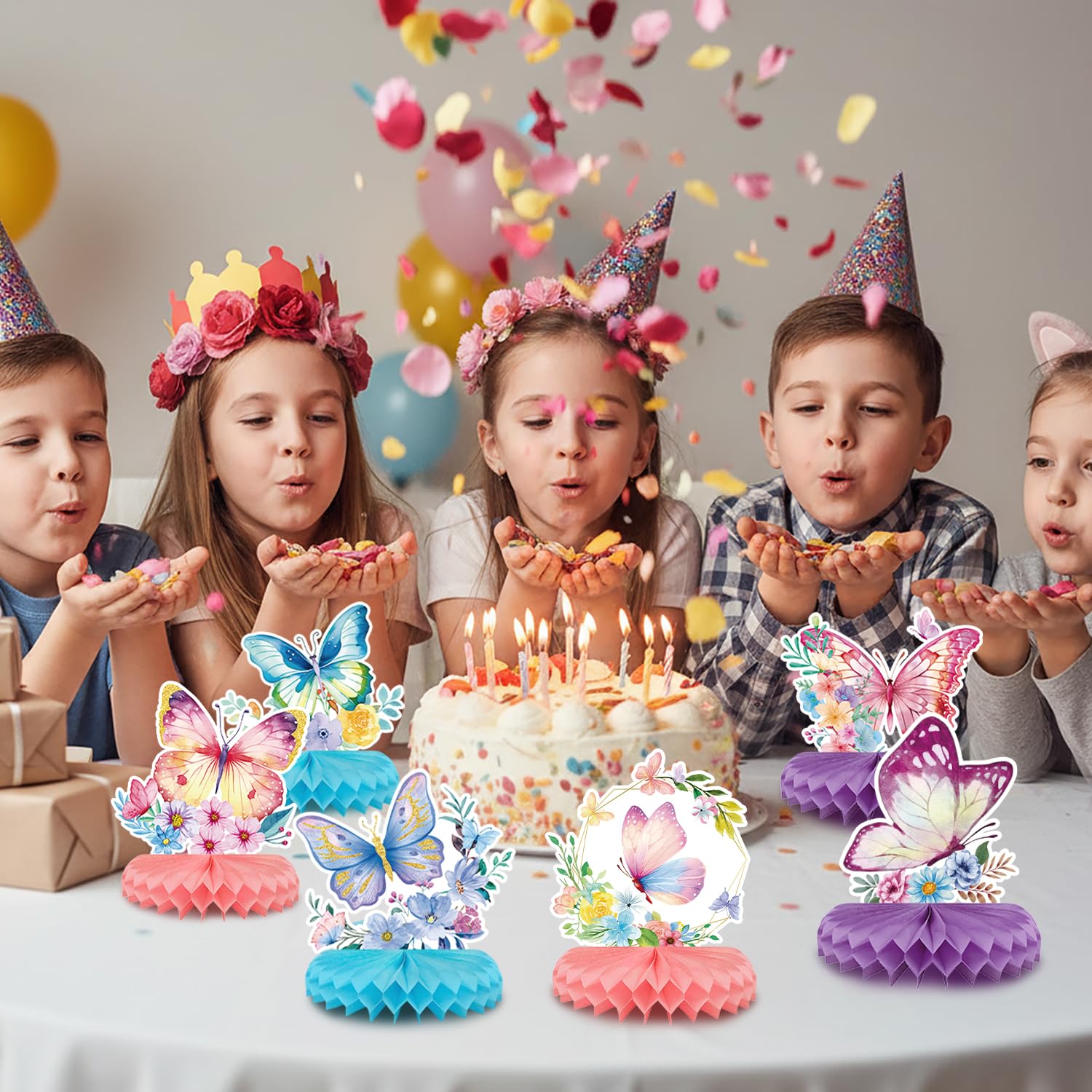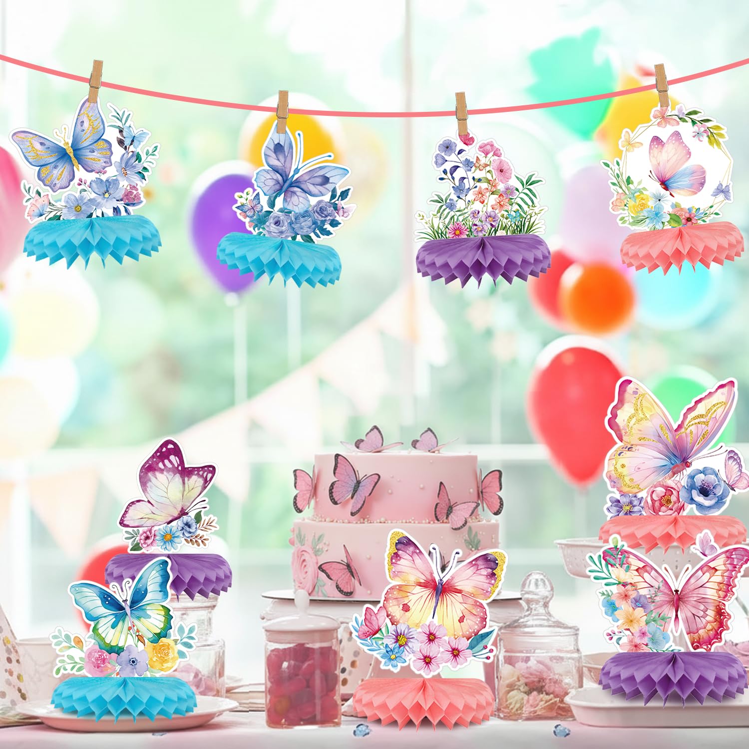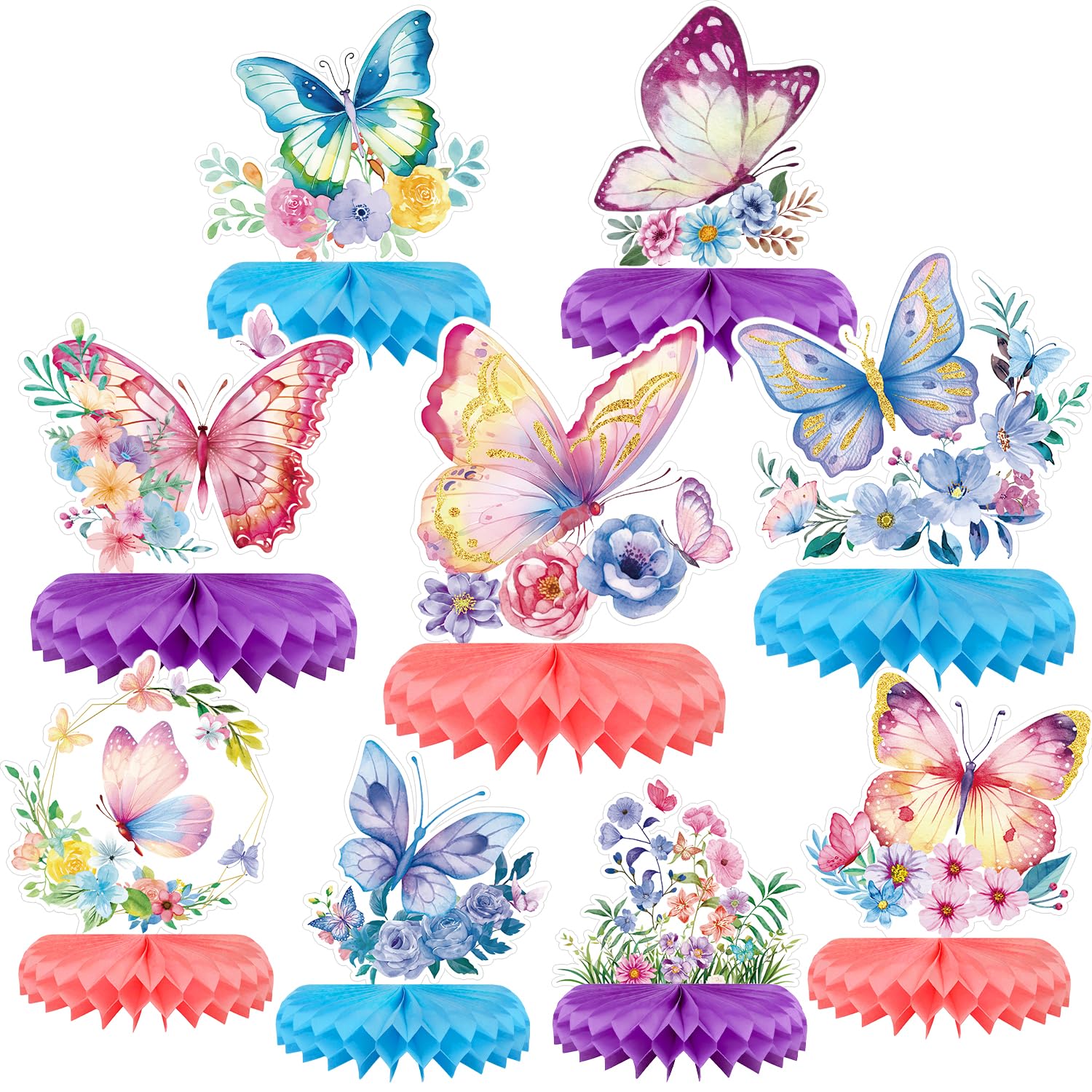 Bright Spring Designs: Butterfly and flower patterns for these butterfly table decorations add vitality and joy to your celebration, making a delightful centerpiece for any children's party