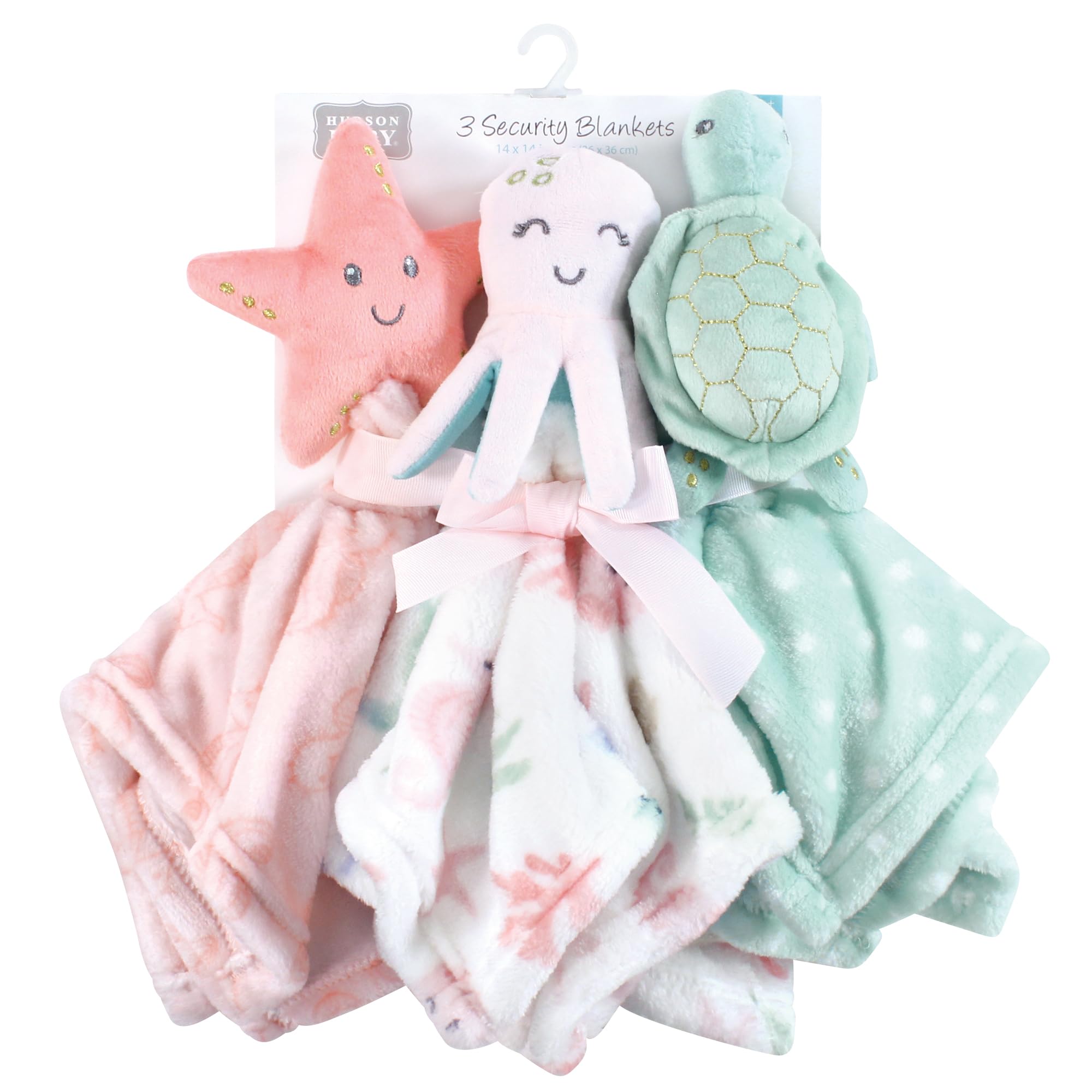 Hudson Baby animal face security blanket will keep baby calm and content with their favorite animal friend. Our security blanket features super soft and luxurious fabric, with a fun animal creature to play and snuggle to their little heart's desire. Our security blanket will surely become a baby favorite.