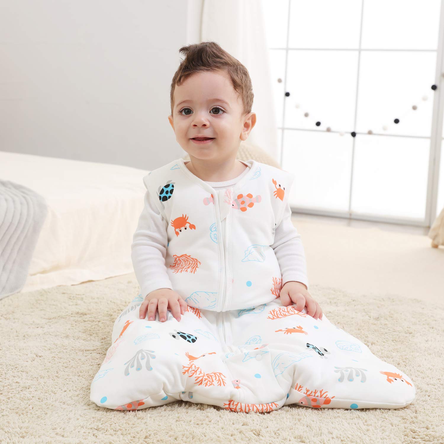 【Sleeveless】Baby sleep sack should be sleeveless to aid the heat loss and air circulation. Babies sleeping under traditional blankets rarely sleep with their arms inside. Sleeveless design reduces the risk of overheating. Your baby is covered and warm all night. No more kicked off covers means your baby sleeps more comfortably.