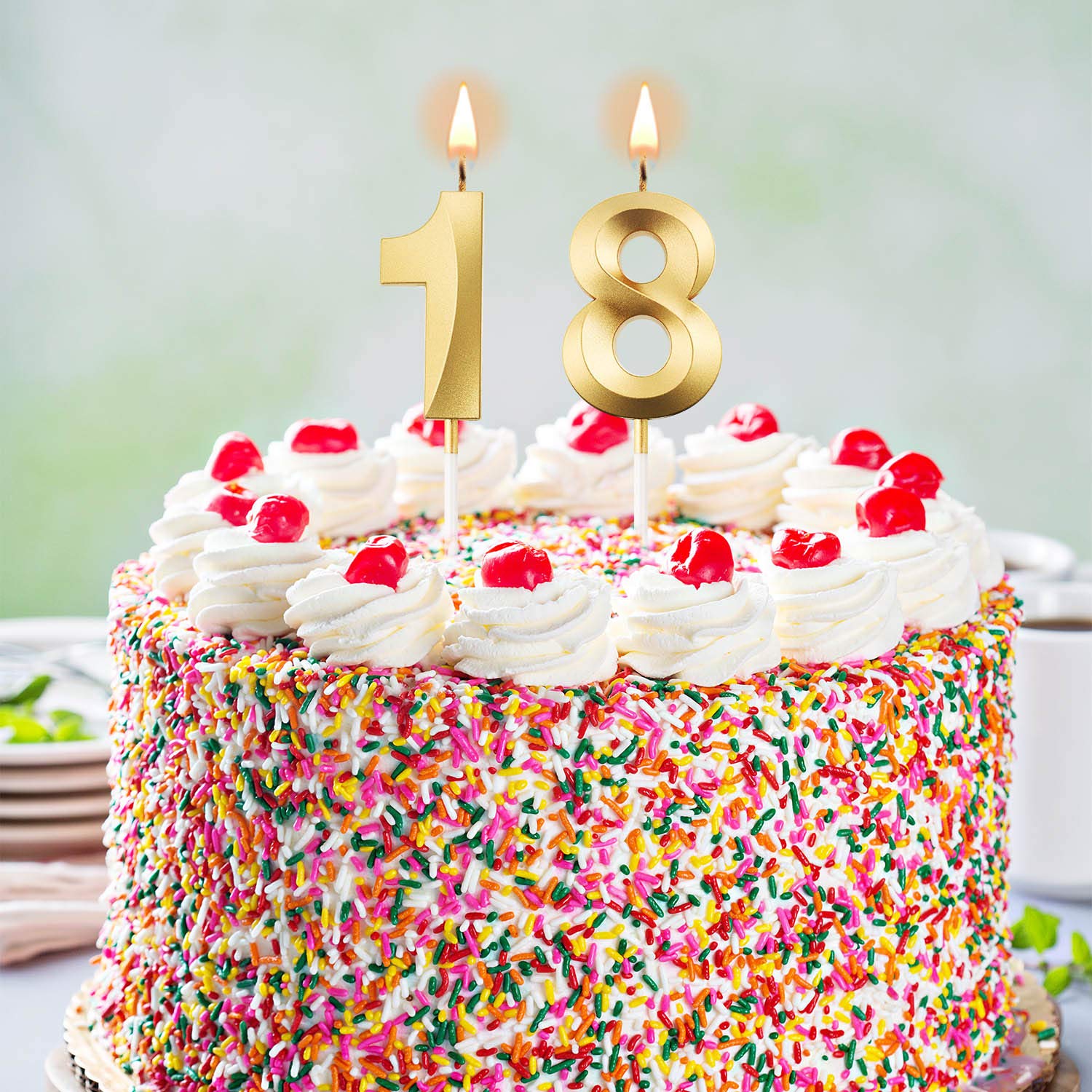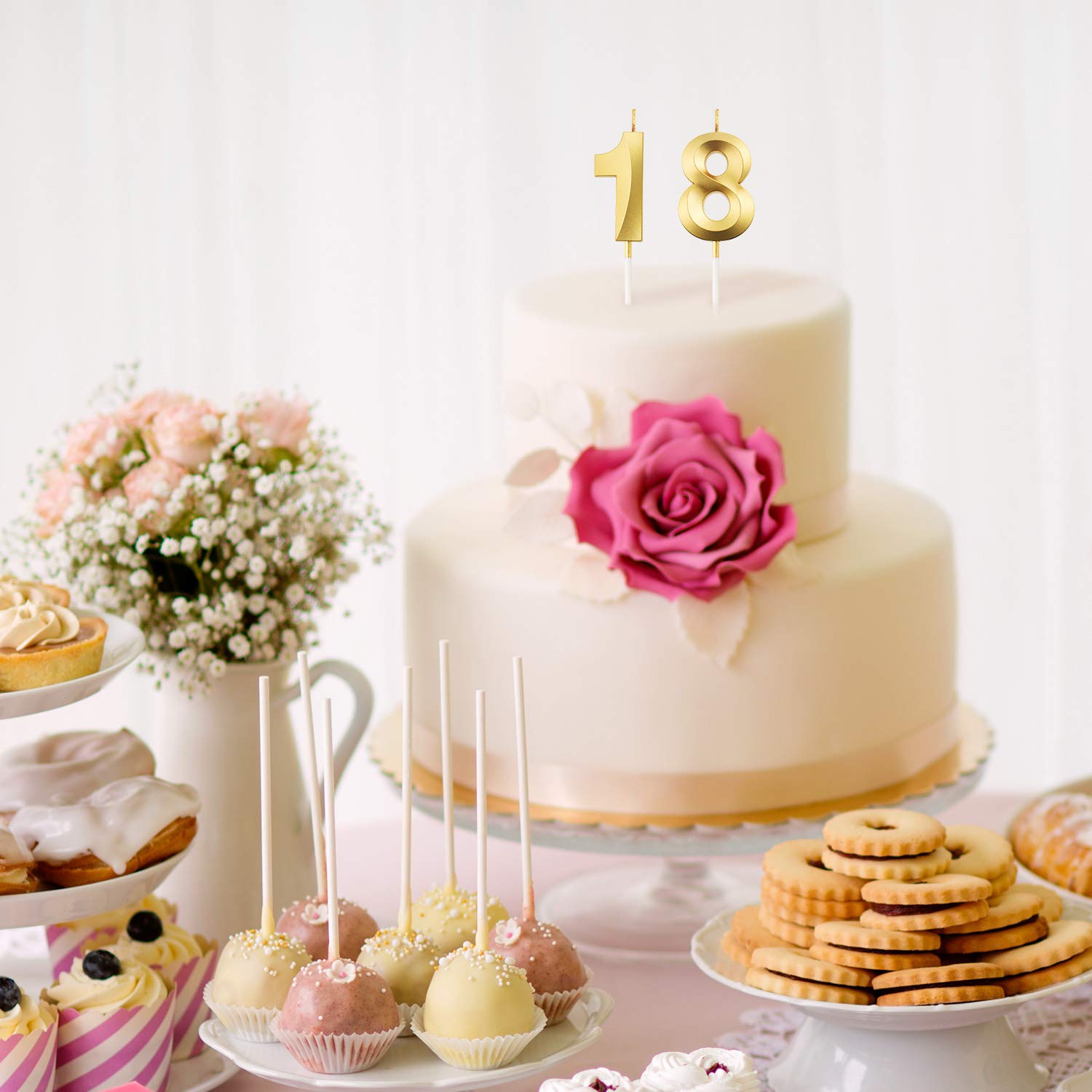 Size details: numeral birthday candle measures about 5 cm/ 1.97 inches in length, and the total length (include the candle pick) is approx. 11.5 cm/ 4.5 inches, appropriate size can be applied as cake topper decoration for most birthday and wedding cake