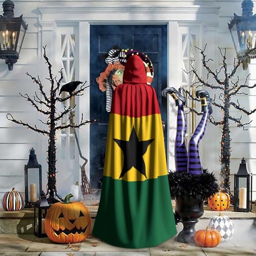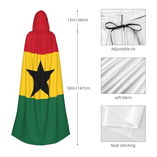 Designed with durability in mind, the WHJDPP Flag of Ghana Printed Halloween Adult Hooded Cape resists wear and tear, making it a non-irritating and comfortable choice for prolonged use at carnivals, costume parties, and other festive occasions, ensuring it remains a staple in your wardrobe for years to come.