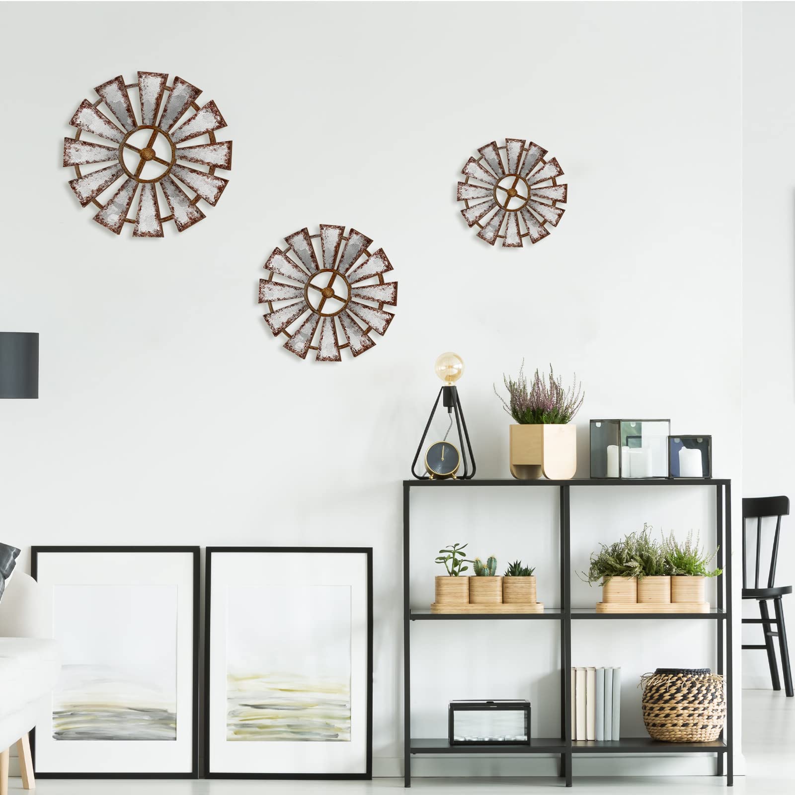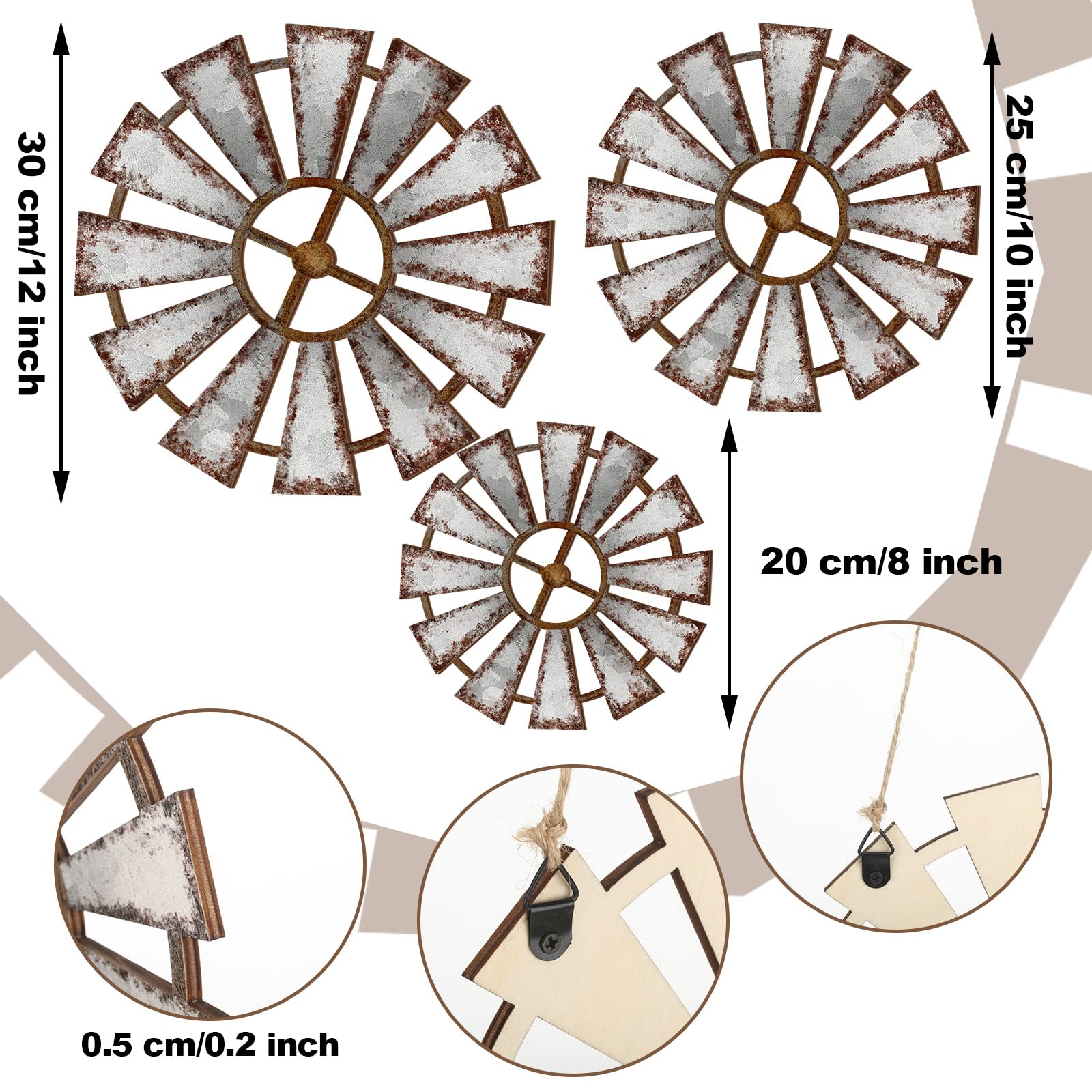 Easy to Operate: rustic farmhouse windmill comes with 2 black triangular hooks on the back, making it easy for you to hang it where you want, such as living room, office, nursery, which will not take much of your time