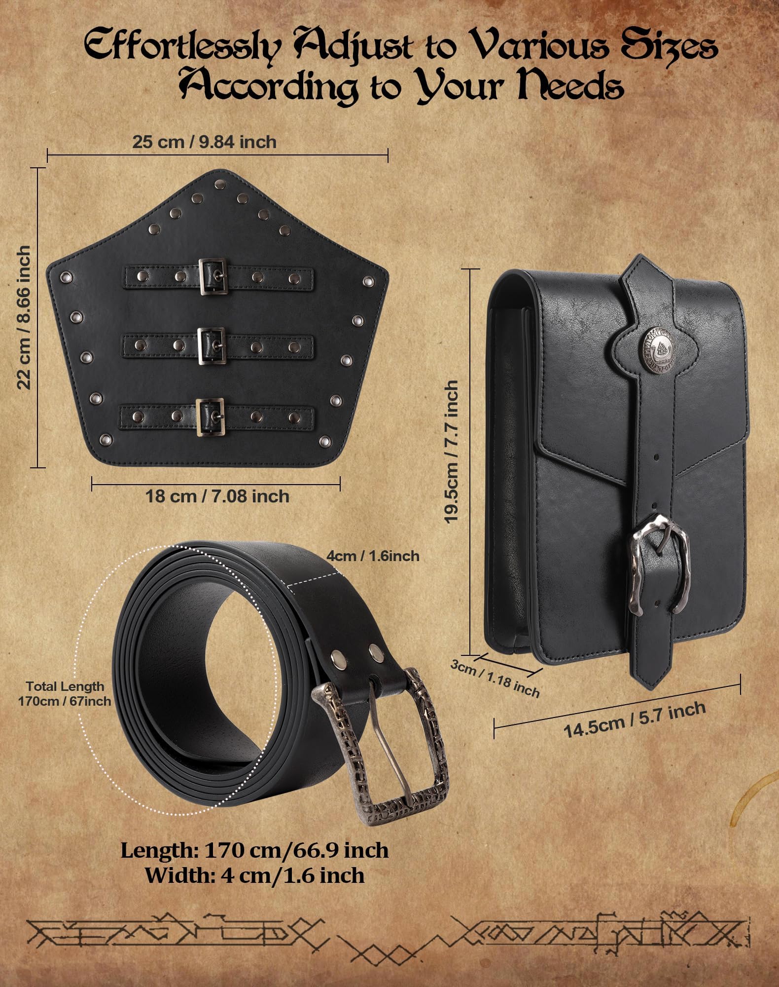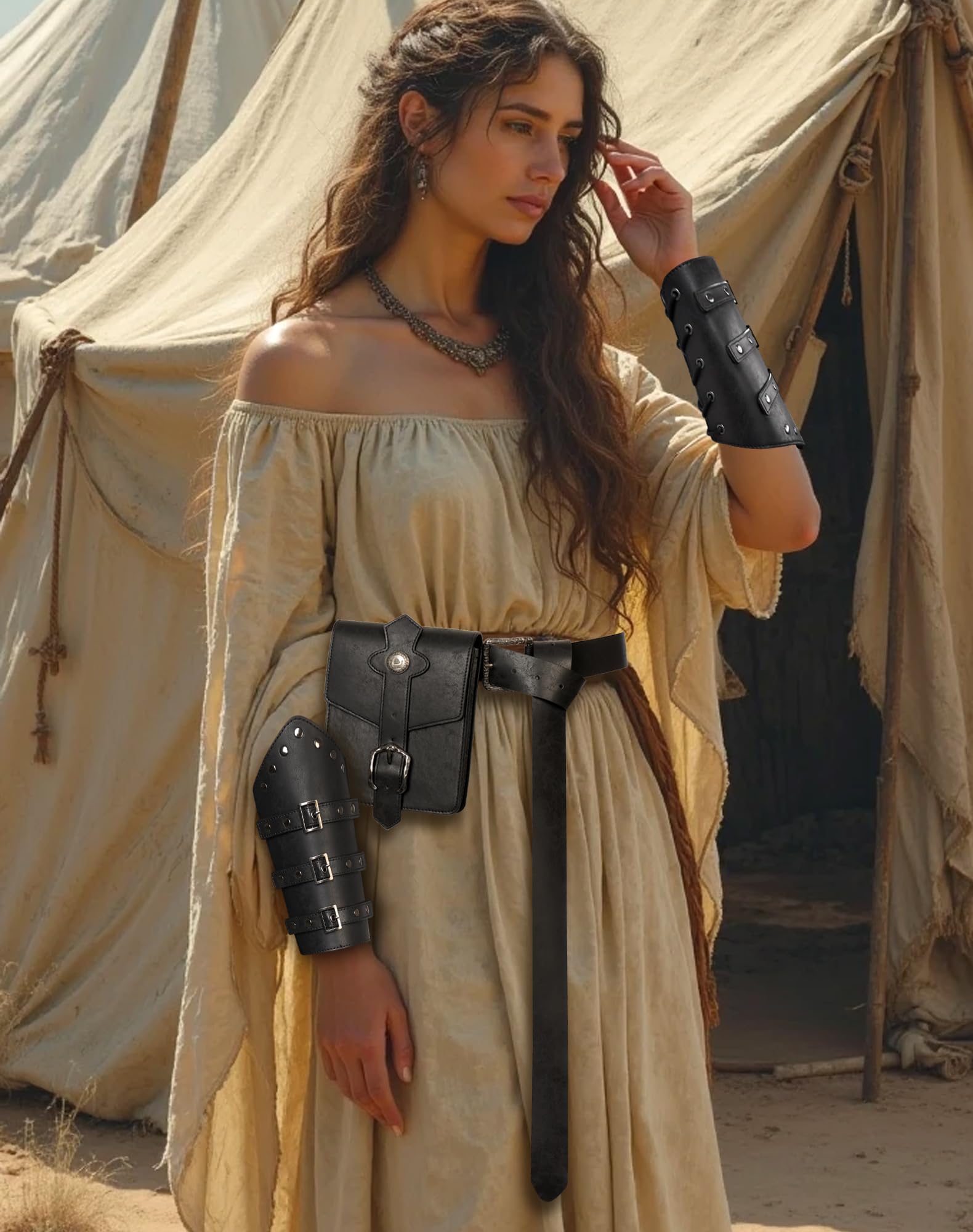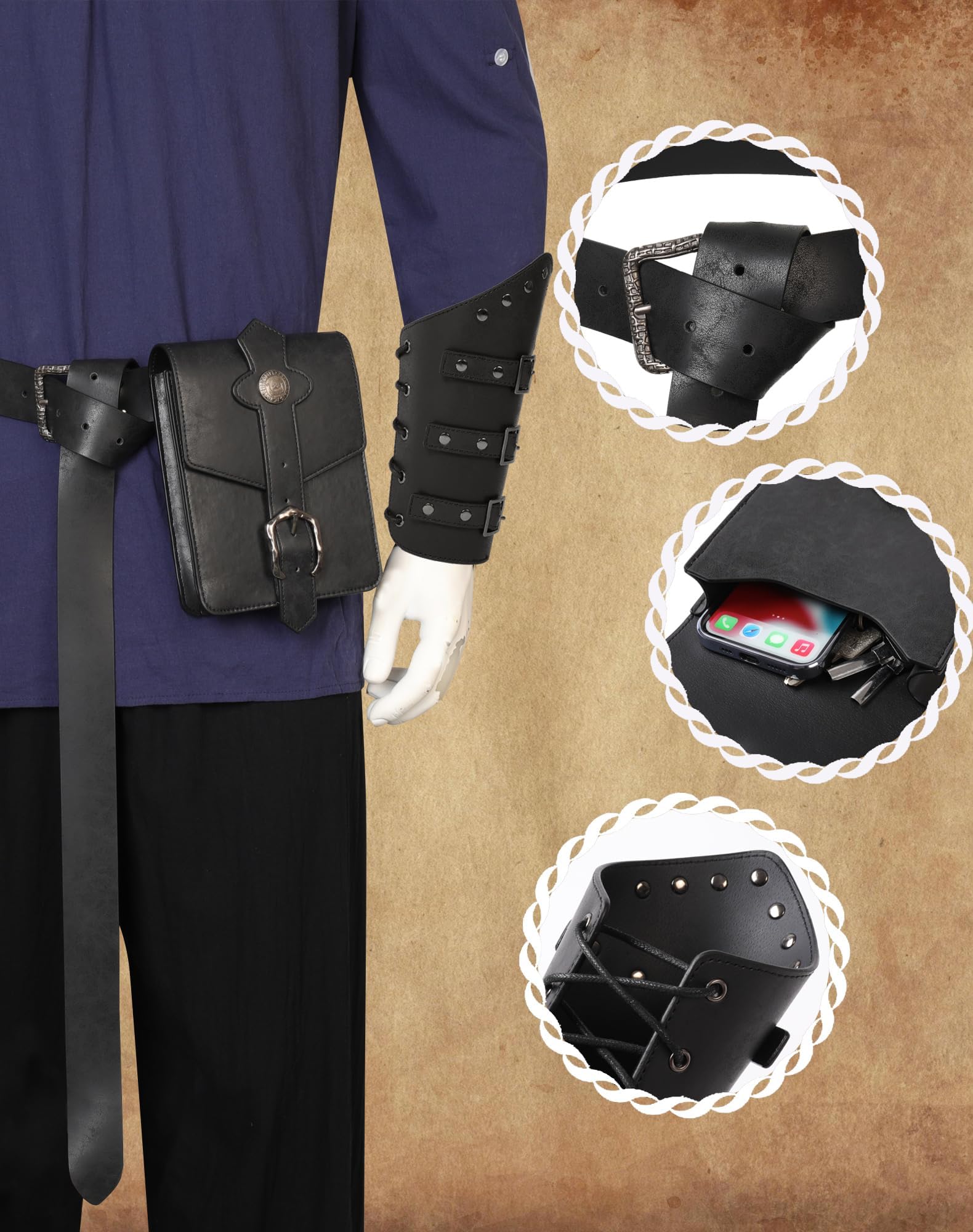 Exquisite Artistry: Every piece in the Renaissance Accessories Set is skillfully crafted, from the leatherwork on the leather bracers to the intricate designs on the Viking belt and medieval belt pouch, you'll experience craftsmanship at its finest.